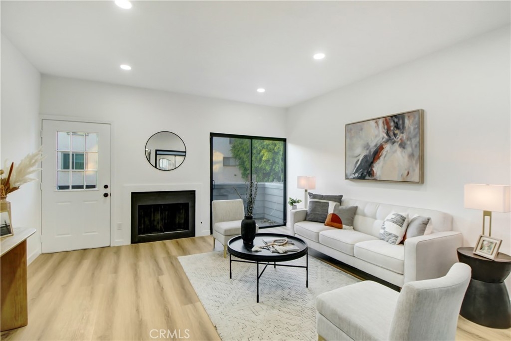 Welcome to this beautifully remodeled two-story townhome in the heart of Tarzana. This elegant residence features two spacious bedrooms, 2.5 bathrooms, and an open, light-filled floor plan perfect for modern living. The thoughtfully designed kitchen boasts sleek quartz countertops, contemporary shaker cabinets, a cozy breakfast nook, and ample storage for all your culinary needs. The inviting living room is highlighted by a stunning stone fireplace, a generous balcony, and a unique atrium at the center of the home, creating an effortless indoor/outdoor flow. Step outside to your private patio, ideal for entertaining, relaxing, or hosting family BBQs. This home seamlessly combines style, comfort, and functionality, making it the perfect retreat.