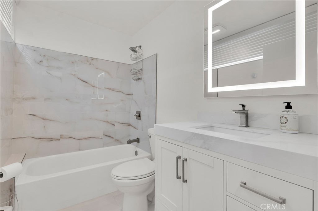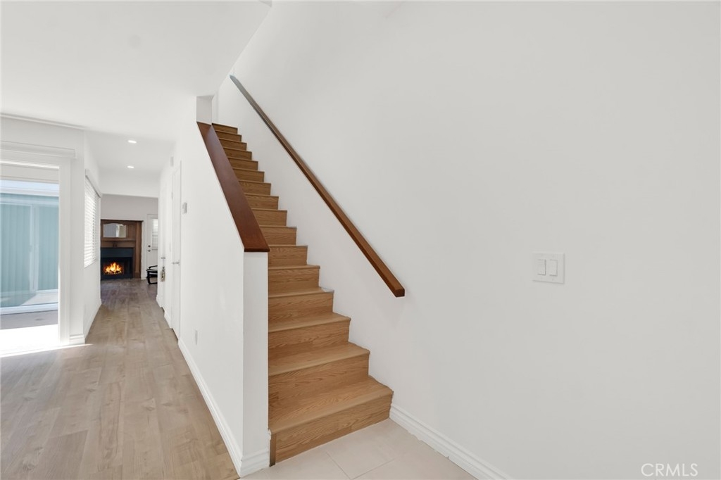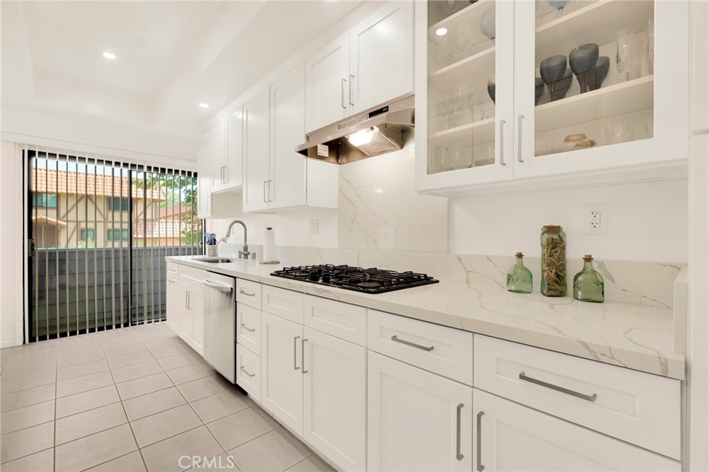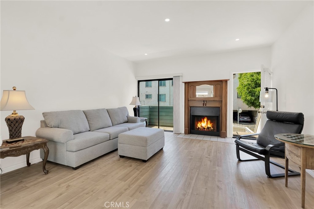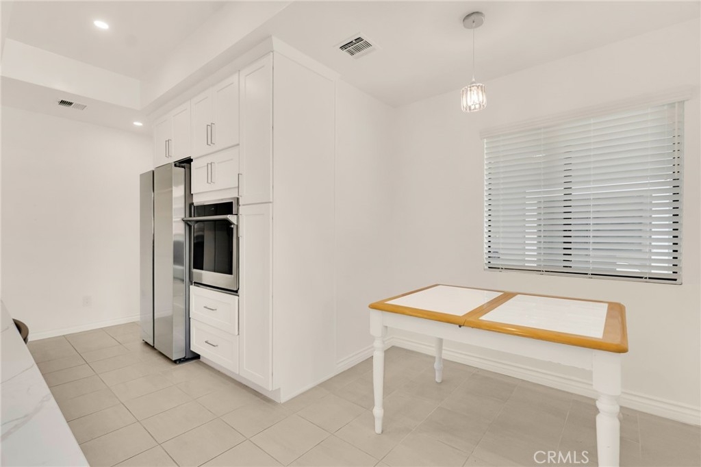 This beautifully updated two-story townhome offers nearly 1,350 sq ft of light-filled living space with soaring ceilings, recessed lighting, and a thoughtful layout designed for both comfort and style. A private entrance opens to a spacious foyer and a modern kitchen featuring white shaker cabinets, marble-like quartz countertops, and stainless-steel appliances including a built-in gas range with hood, gas wall oven, dishwasher, and refrigerator. The adjoining breakfast nook leads to a charming front-facing balcony, while the formal dining room and living room are connected by a unique center atrium accessible from both spaces. The living room boasts a gas fireplace, sliding glass doors to a rear balcony, and direct access to the private, fenced backyard—a blank canvas ready for landscaping, a patio, or both. Upstairs, the primary suite impresses with cathedral ceilings, a raised gas fireplace, wall-to-wall mirrored wardrobe, and a full en-suite bath with updated dual-sink vanity. The secondary bedroom also features cathedral ceilings and a mirrored wardrobe, with an updated full hall bath and side-by-side laundry closet conveniently located between the two rooms. Additional highlights include two tandem parking spaces in the gated subterranean garage, plus community amenities such as a pool and spa within a boutique collection of just 24 townhomes. Ideally situated in Tarzana near Ventura Boulevard’s eclectic mix of dining, shopping, and cafés, this home offers quick access to the 101 Freeway and popular outdoor spots like Tarzana Recreation Center. Assigned to highly rated Gaspar De Portola Middle School, this residence delivers a rare blend of stylish upgrades, outdoor living, and everyday convenience.