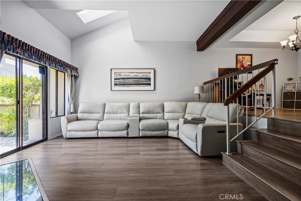 Enter this great tri-level floor plan condo through an open patio with direct access to the street and sunlight. All within your own tall and lush landscaping for privacy leading into the living room with vaulted ceilings, fireplace, and a wet bar. The dining area is large to host guests and the kitchen is well equipped with a cooktop, built-in oven, built-in microwave, dishwasher, and trash compactor. The primary bedroom features vaulted ceilings, a fireplace, a walk-in closet, and a balcony. The spacious primary bathroom has two separate sink vanities and a large tiled shower. The second and third bedrooms have been combined to make a larger room or other use of your choice. This can be converted back into two separate rooms as originally built. The two-car garage is directly attached to the lower level and has direct access to the interior of the home. Enjoy the community lush grounds, pool, spa, tennis courts, clubhouse, and guest parking Located near public transportation, restaurants, shopping, and freeway access.
