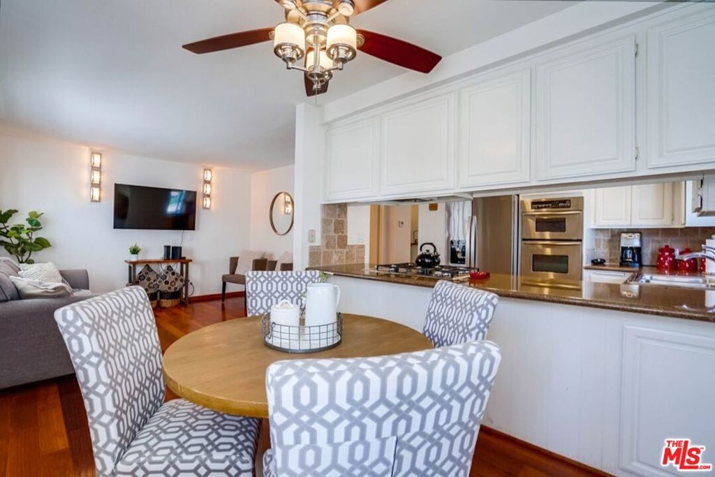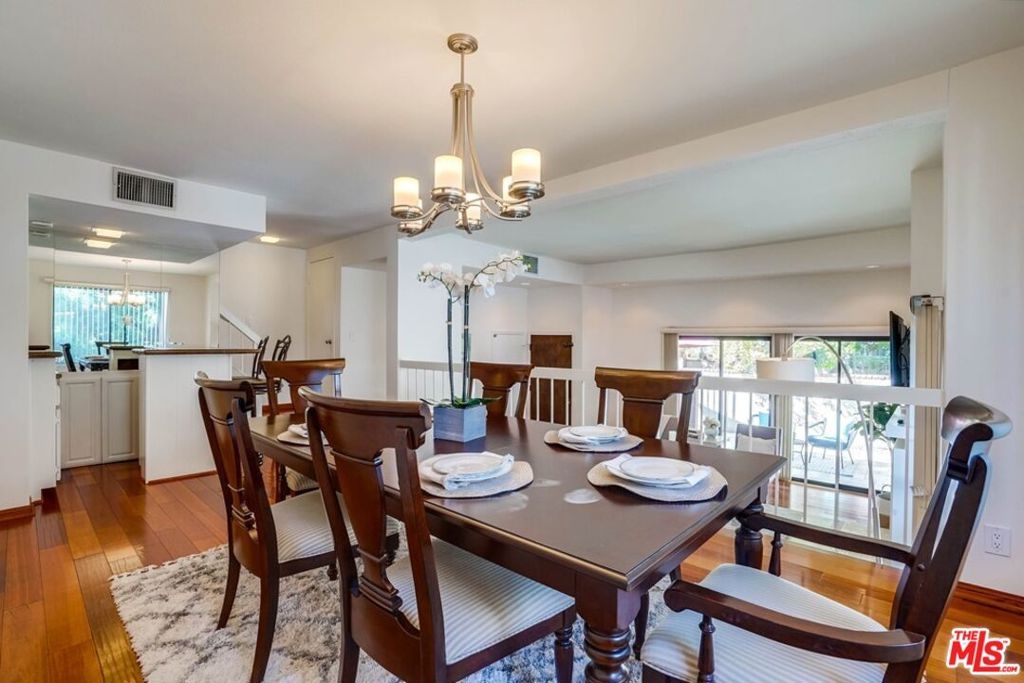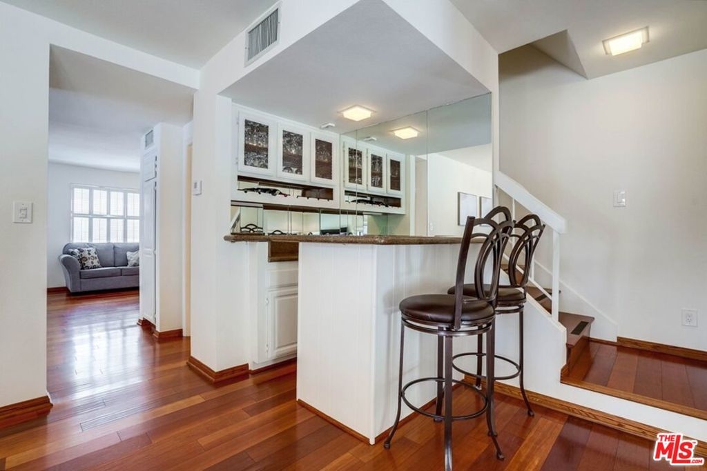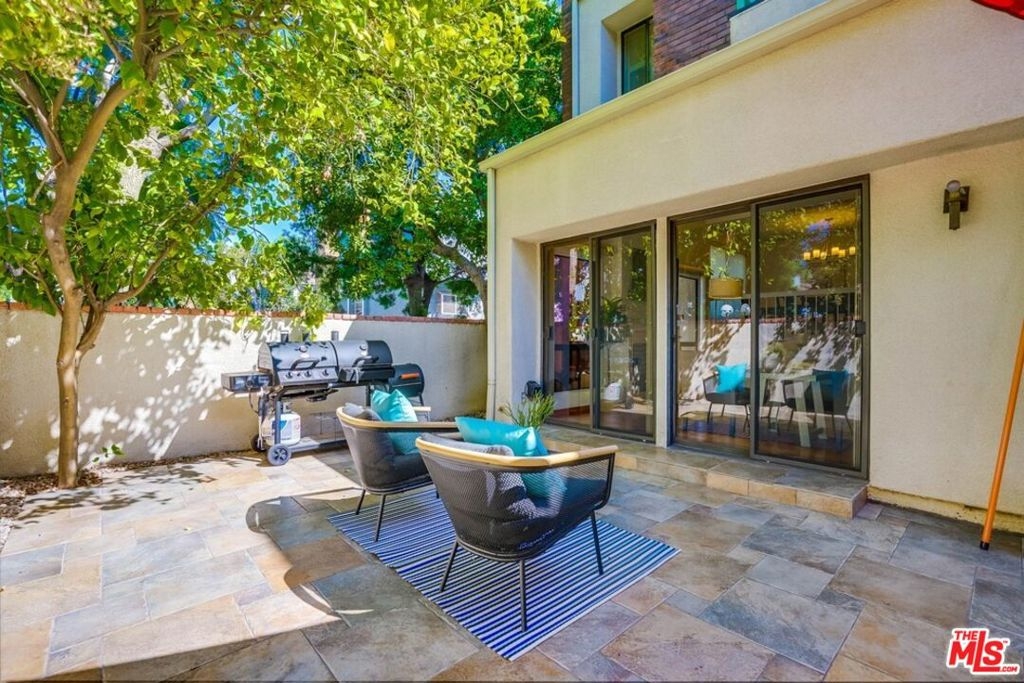 Terrific tri-level townhome located in the highly desirable Tarzana Courts. Large private patio perfect for relaxing on the weekends sets the tone of this light and bright three bed & three bathroom home. Includes hardwood floors throughout w/only one common wall. Living room features high ceilings, fireplace, recessed lights & glass sliders to the patio. Steps lead to the formal dining area, wet bar and guest powder. Updated kitchen with granite counters, ample cabinet space & stainless steel appliances open to breakfast area and den/office. Spacious primary bedroom has windows on three sides, vaulted ceilings, a walk-in closet. and large balcony overlooking a park-like setting of plush landscaping and cozy park benches. Primary bathroom w/separate jetted tub & shower, dual sinks & romantic skylight. Second and third bedrooms share hallway bath with tub/shower combo. Large ground-floor laundry/utility room features SxS washer & dryer and floor to ceiling built-in cabinets for storage. Direct access 2 car garage includes additional storage space. HOA amenities include community pool & spa, clubhouse, N/S tennis courts and guest parking on west side of complex. Waiting for you to move in!