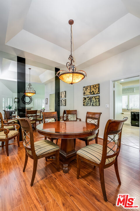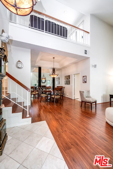 Resort-Style Living in a Stunning Tri-Level Tarzana Townhome. Tarzana Courts, a gated and highly sought-after community, offers the perfect combination of privacy, comfort, and convenience. Nestled in a serene, park-like setting with lush landscaping and cozy park benches, this beautifully appointed 3 bedroom, 3 bathroom townhome, has all the space and features you need for modern living. The community amenities include a sparkling pool and spa, clubhouse, North/South tennis courts, and ample guest parking. With only one shared wall, this light and bright unit offers added privacy and tranquility. The home opens to a large private patio ideal for relaxing weekends or evening gatherings. Inside, the living room welcomes you with soaring ceilings, a cozy fireplace, recessed lighting, and glass sliders. The kitchen features stone countertops, stainless steel appliances, and plentiful cabinet space, and it opens to a sunny breakfast nook and a versatile den or office area. Hardwood floors run throughout the main living areas, enhancing the home's warmth and elegance. Upstairs, the spacious primary suite is a true retreat with windows on three sides, vaulted ceilings, a romantic skylight, and a walk-in closet. The en-suite bathroom offers dual sinks, a jetted soaking tub, and a separate shower. Two additional generously sized bedrooms plus another balcony. The attached two-car garage provides direct access to the home and includes additional storage space and a large ground-floor utility room with a side-by-side washer and dryer. Ideally located just minutes from top-rated schools, Gelson's Market, Tarzana Providence Cedars Hospital, popular restaurants and shopping, and Braemar and El Caballero Country Clubs. With easy access to Ventura Blvd and the 101 Freeway, this home is the perfect balance of luxury, convenience, and lifestyle.