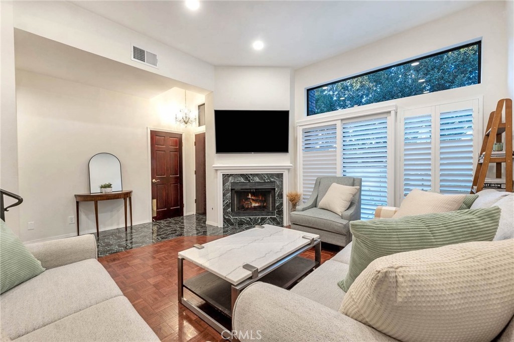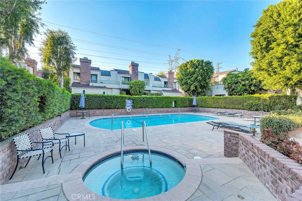 Welcome to resort-style living at Tarzana Courts, a hidden gem tucked away behind private gates. This small, exclusive community of just 58 townhomes offers everything you need for a tranquil and secure lifestyle, including lush landscaping, a sparkling pool and spa, clubhouse, and tennis court. Nestled in a park-like setting, this townhome faces beautiful open space, ensuring peace and privacy. Step inside and be greeted by soaring vaulted ceilings and an abundance of natural light, creating a bright and airy modern atmosphere throughout. The recently remodeled kitchen is both modern and functional with newer stainless steel appliances and stone countertops, making meal prep a joy. Whether you're unwinding by the fireplace in the cozy living room or enjoying the fresh air on your spacious private patio, this home offers the perfect retreat. When it's time to entertain, the open floor plan flows seamlessly for easy gatherings with family and friends. The second floor is dedicated to the bedrooms, including a luxurious master suite with vaulted ceilings, a large walk-in closet, and its own fireplace. The master also features a bonus seating area or office space with a vaulted window for extra natural light, plus a private balcony overlooking the lush green surroundings. Two additional spacious bedrooms are down the hall, offering plenty of privacy for loved ones. The attached two-car garage provides direct access to the home and includes laundry facilities and electric car charging, ring doorbell and alarm for added convenience. Located just minutes from top-rated schools, fabulous restaurants, shopping, Gelson's Market, Tarzana Providence Cedars Hospital, Braemar and El Caballero Country Clubs and easy access to Ventura Blvd and the 101 Freeway, this home is ideally situated for both comfort and convenience. You don't want to miss the opportunity to make this stunning townhome yours today!