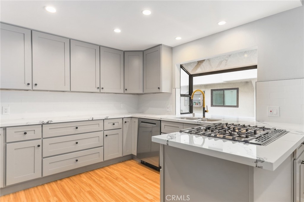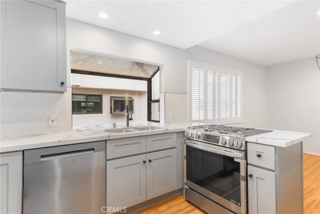Your new home in the heart of Tarzana awaits. Close to freeways and shopping. This stunning, light and bright townhouse has been fully upgraded. Entering through the front door or garage you are greeted by an entertainer’s living space with fireplace/ bar and access to the patio. The formal dining room with chef’s kitchen and breakfast area greet the guest on the second floor. The third floor includes luxurious primary suite with fireplace and sitting area or exercise/office space. Luxurious ensuite primary bath with walk in shower, walk in closet and storage. Upgrades include a new shaker kitchen with quartz counter tops, new stainless steel appliances, recessed lighting and fresh paint. Laminate flooring and tasteful tile throughout, new lighting and plumbing fixtures round out this homes upgrades. The Tarzana courts community includes Pool/Spa peaceful grounds perfect for walks