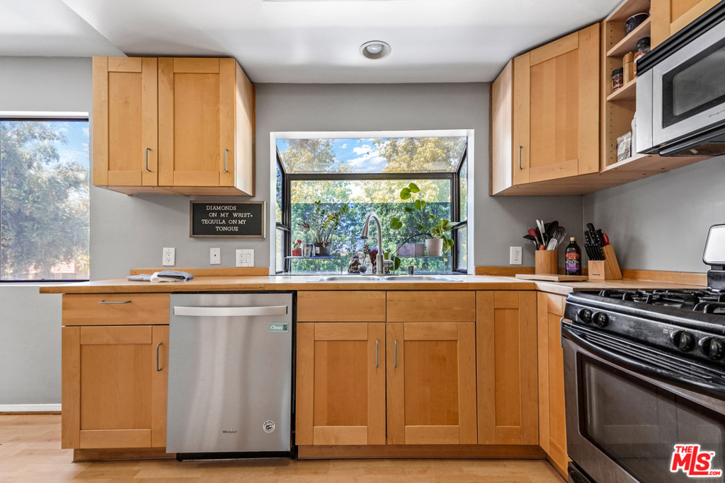Located in a highly sought-after, very desirable and well-maintained, quiet Tarzana Courts, a gated- resort- style community. This beautiful, spacious 2-bedroom, 2.5 bathrooms tri-level townhome is complimented by natural light and is appointed by laminate floors and vaulted ceilings. Make your way into the living room, wet bar and guest bath room, then to a front large patio/yard where you could entertain, relax and plant your favorite flowers, herbs or vegetables. Take a few steps up to the dining area and on to the large updated kitchen with lots of cabinetry, a greenhouse window and room for casual dining. Up one level to the first bedroom suite where skylights shine, ample closets, outdoor balcony and additional indoor sitting area perfect for an home office or gym. Bath has double sinks and a large shower. The second bedroom also ensuite has a newly remodeled bathroom. Back down to an attached direct access to the 2 car garage with a washer and dryer. Enjoy the community lush grounds, pool, spa, tennis courts, clubhouse and guest parking. Minutes to freeway, shopping, restaurants.