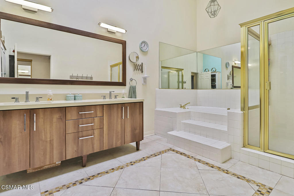 This two-bedroom + finished basement traditional townhome, with two-car direct entry garage, is conveniently located in Tarzana and offers easy access to shopping and highways. This home is inviting from the moment you step into the foyer with its tall ceilings and open floorplan. The spacious formal living room exudes ambiance with built-in bookcase, large windows, plantation shutters, cozy fireplace and a walkout to a quaint outdoor terrace. The dining area is adjacent to a nicely equipped kitchen featuring double ovens, granite countertops and ample cabinets/storage space. The family room is just off the kitchen allowing for an easy flow on conversation with family and friends as you entertain. The primary bedroom is the best part of this home with its grand feeling, vaulted ceiling, corner fireplace and large walk-in closet plus balcony. The updated primary bathroom features jetted tub, shower and oversized dual sink vanity. Second bedroom is nicely sized with private full bathroom. Lower level is finished so it's ideal for work from home, workouts, or a playroom. Convenience, plenty of living space and tranquility abound in the not-to-be-missed townhome!