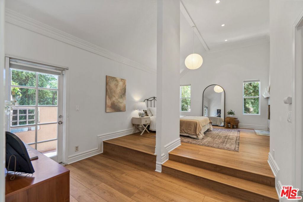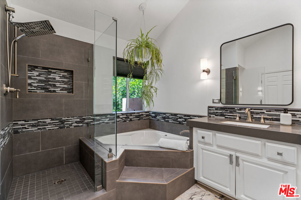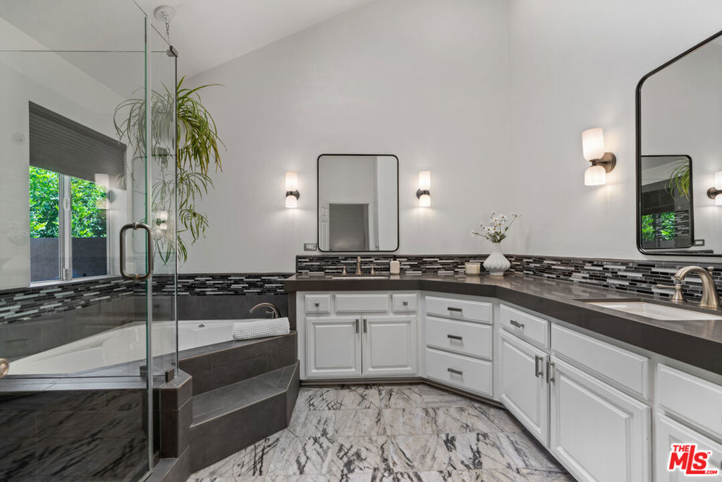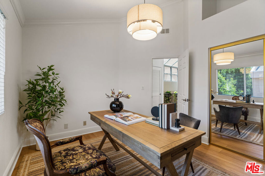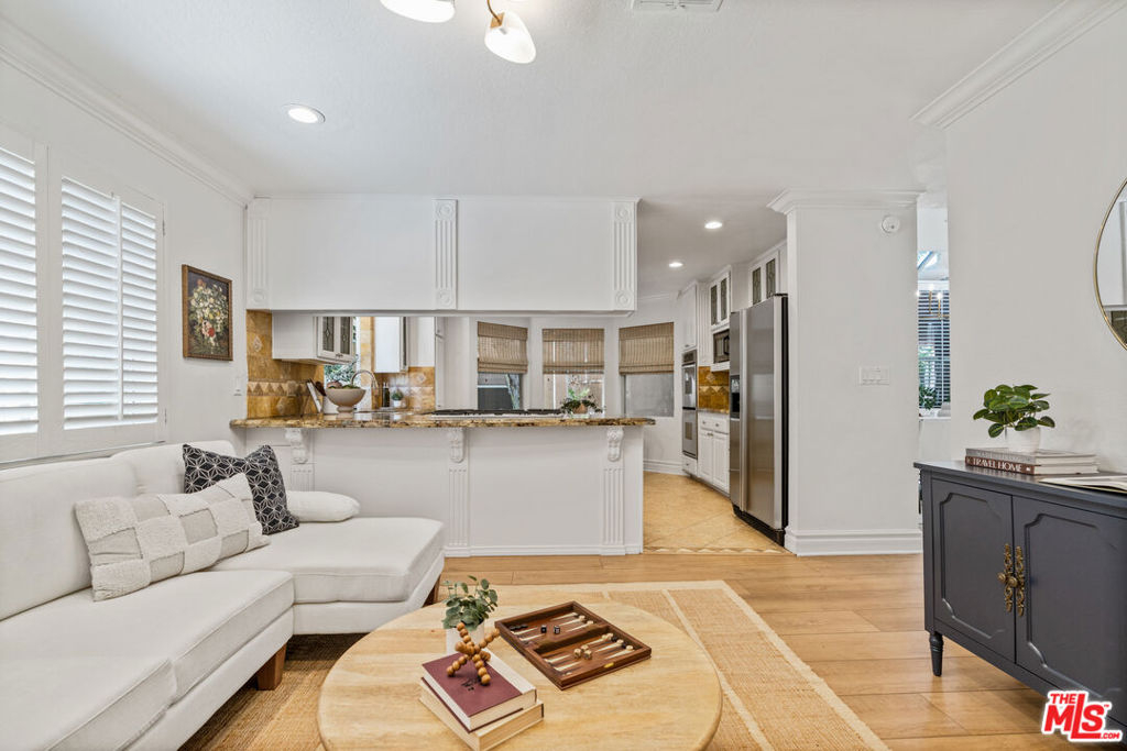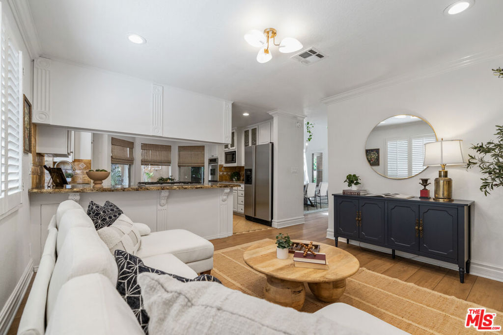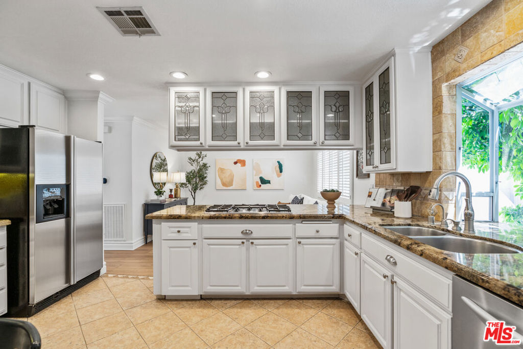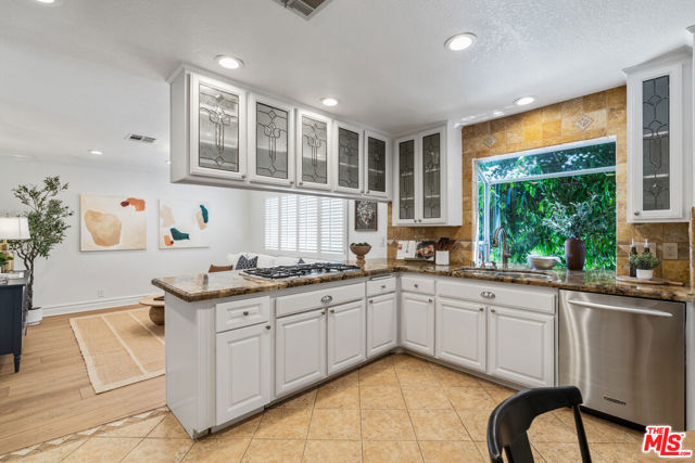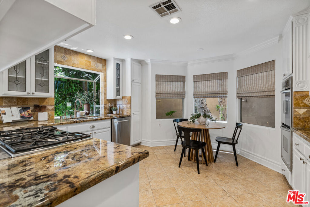 Welcome to your personal sanctuary in the heart of Tarzana. Tucked into one of the most sought-after locations in this gated resort-style community, you'll find an end-unit tri-level condo that blends warmth, character and a true sense of home. This 3 bed, 3 bath tranquil haven has been thoughtfully improved throughout, perfect for move-in ready living. The inviting main level features new flooring, new lighting, soaring ceilings, an abundance of windows and a semi-open floor plan, offering the comfort of distinct spaces while still flowing seamlessly from one area to the next. As you enter, you're welcomed into a spacious living area with a cozy fireplace and wet bar, ideal for entertaining or relaxing at the end of the day. Floor-to-ceiling shutters dress the sliding doors that open to an expansive patio, perfect for grilling or dining al fresco. Just beyond the living room, a charming den framed by an arched entry and a wall of built-in shelving offers a versatile alcove, perfect for a home office or reading nook. Adjacent to the den and the newly-renovated powder room is the jewel of the home - the dining room. Angled windows above and a wall of additional windows below allows light to flood in, creating a greenhouse-inspired atmosphere that's perfect for enjoying a meal. Past the dining room, the sizable kitchen strikes the perfect balance of convenience with modern touches with stainless steel appliances, granite counters, an abundance of cabinetry and windows. Open to the family room, it's a seamless space for both cooking and gathering. Upstairs, retreat to the oversized primary suite complete with a vaulted ceiling, fireplace, private balcony, large walk-in cedar closet, and an updated en-suite bath boasting a double vanity, luxurious spa tub and separate shower. Two additional bedrooms with spacious closets and a full bathroom complete the 2nd floor. On the lower level, enjoy the convenience of in-unit laundry and a versatile bonus flex-space perfect for a home gym, creative studio, or added storage. You'll also find direct access to a private 2-car garage with additional storage. This serene setting is located just minutes from the hustle and bustle of Ventura Boulevard, where local favorites like Blu Jam Cafe, Wanderlust Creamery and Gasolina Cafe are located. Enjoy convenient access to the new Trader Joes (with a big parking lot!) Equinox, LA Fitness, Whole Foods, Gelson's, and the 101 Freeway, making it easy to connect to the rest of LA.