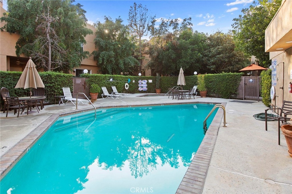 One of the most sought after townhomes in Tarzana. Tarzana Falls has beautiful grounds with waterfalls and landscaping, tennis courts, and large pool with rec room. This three story townhome has two bedrooms and three baths. High ceilings throughout. Dramatic living room has high ceilings and fireplace, with a elegant wet bar. Great for entertaining . The living room, also opens up to a spacious patio. The kitchen has updated appliances and an eat-in area that opens to family room. Elegant formal dining room is on this level also. Upstairs the guest bedroom has its own bath and large closet space. The primary bedroom is spacious, with vaulted ceilings, large closet, fireplace and another patio. Primary bedroom en suite bathroom is expansive with high ceilings, two large sinks with tons of counter space and storage. Separate walk in shower and separate spa tub. There is a large bonus room that could be a gym ,media room, or office. There is a direct access to the good size 2 car garage, with tons of storage. There is also lots of guest parking, and earthquake insurance is included in homeowners. Great location close to shopping and restaurants!