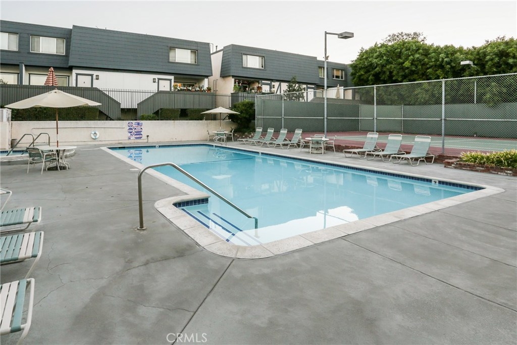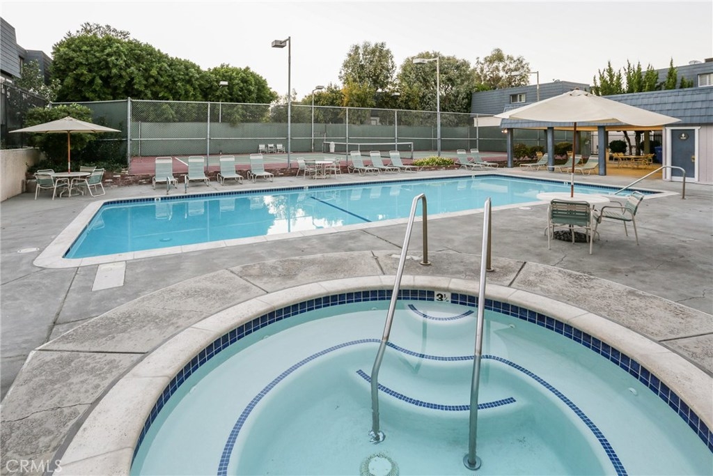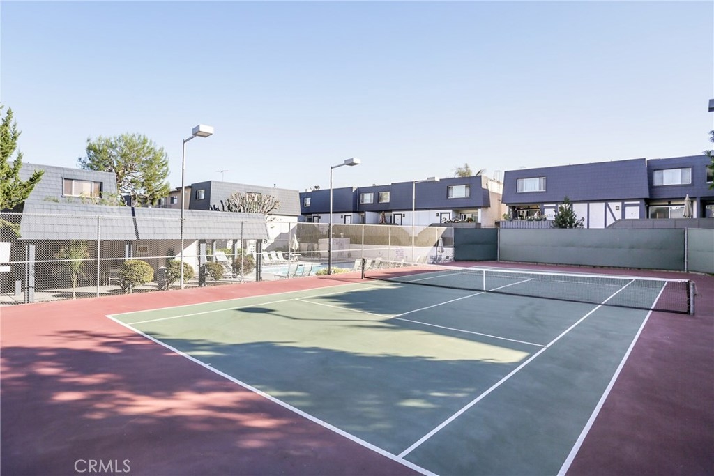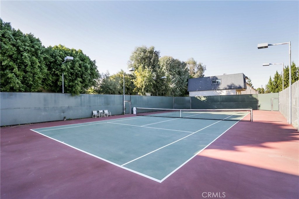 Tarzana, prime, off-street townhouse is located toward the back of the development so your guests will walk past the beautiful pool/spa and tennis court area! This freshly painted 2 bedroom, 2.5 bath townhome features new carpet, fresh paint and an upgraded kitchen with granite counters, breakfast bar, stainless steel sink and faucet. Dining area. Living room with mirrored fireplace. Upstairs features a master suite with an ensuite bathroom, secondary bedroom and hall bath with shower/tub combination. A bonus area off at the bottom level, with washer and dryer hookups, is spacious enough for a small gym or office. Attached garage. Private deck area off the living room. This meticulously maintained development is highlighted by a lovely pool and spa area with a covered patio and lighted tennis courts.