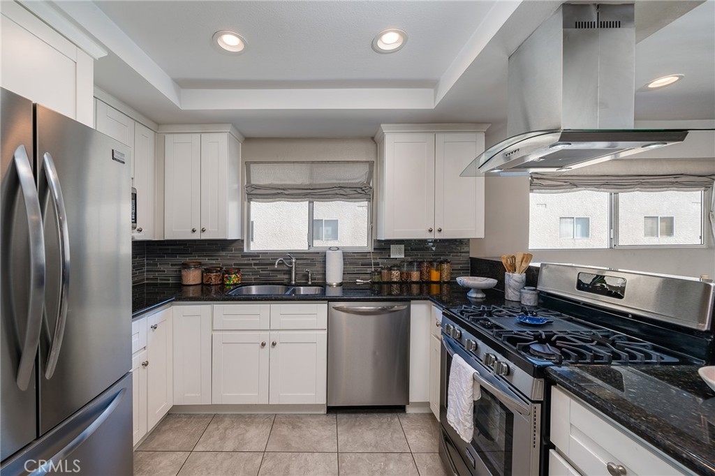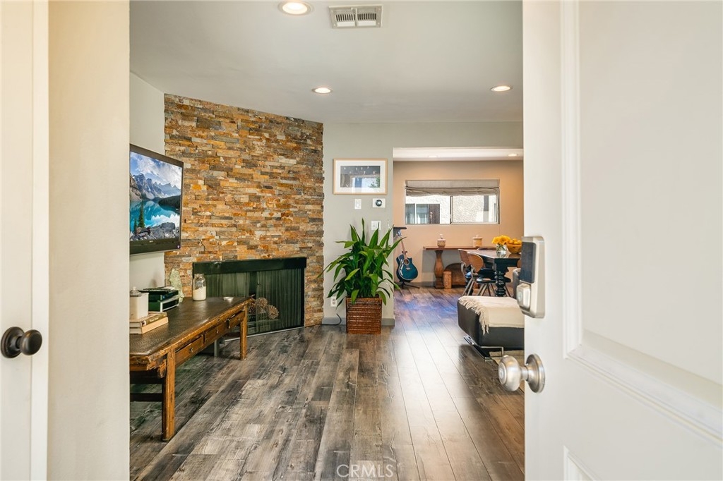 Welcome home to this meticulously renovated tri-level townhome located in one of the most sought-after communities in Tarzana. This unit is perfectly situated in the gated Tarzana Gardens toward the back of the community. When you enter through the front door you are met with beauty and tranquility. The highest of upgrades have been thoughtfully placed throughout this spacious home surrounded by lush landscape. Designer paint throughout. Recessed lighting. Stacked stone adorns the fireplace making it a gorgeous centerpiece of the living room. The spacious living room has sliding glass doors that go out to the private enclosed patio set for mediation and relaxation. Top of the line laminate flooring throughout the rooms. Italian tiled kitchen floor. Kitchen opens to the spacious dining area with breakfast bar. Top of the line stainless steel appliances. The beautiful remodeled kitchen has a double sink, soothing backsplash and lots of storage space. Top of the line cabinetry throughout the kitchen. The door in the kitchen leads you downstairs to a great bonus room fit for an office or gym or guest room. The attached garage is on the lower level with two side-by-side parking spaces. Powder room located downstairs off living room. As you ascend the stairs off the living room you are greeted with two spacious bedrooms. The Master Suite has custom sliding glass closet doors. The Master bath has gorgeous earth tone tile and beautiful vanity. The second bedroom is spacious with separate bathroom that has been remodeled with beautiful tile. Each window looks out to lush green trees and is very light and bright. This is truly a one-of-a-kind tome home . There has been no expense spared with all of the meticulous upgrades and designer touches. Close to Ventura Blvd. and Tarzana Safari Walk which includes Whole Foods, restaurants, shopping and more.