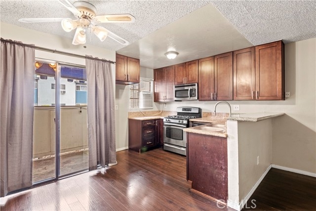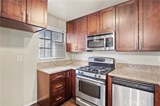 Fully renovated throughout 1 bedroom, 1 full bathroom, over 600 sqft Tarzana condo. Prime location that is walking distance to Ventura Blvd, shops, restaurants and minutes from the 101 freeway. Hardwood floors, newer kitchen with granite countertops and cabinets as well as in the bathroom. Newer stainless steel appliances (microwave, dishwasher, gas stove). Plenty of closet space for storage. Enjoy the private patio. Unit has 2 assigned parking (tandem). Complex offers a swimming pool, jacuzzi, BBQ area and multiple laundry rooms. HOA dues include water and trash.