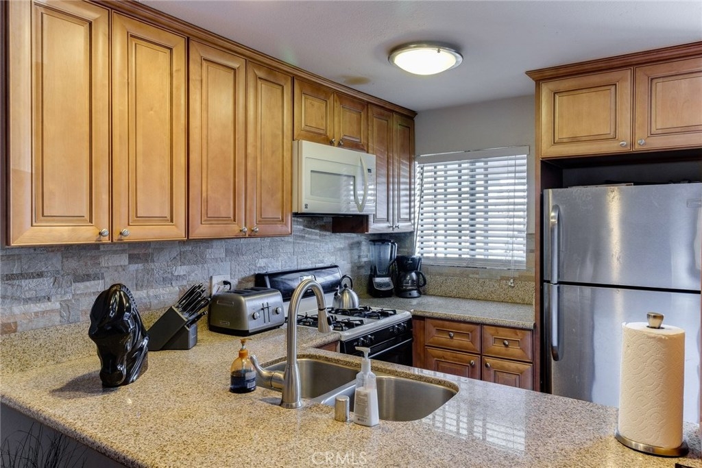 Spacious and well appointed Tarzana condo with 2 Master Bedrooms! This unit is light and bright and features hardwood floors and a beautiful kitchen with custom cabinetry, granite counter tops. Upper level unit located close the stairway with 2 parking spaces included! The complex features low HOA. Centrally located in Tarzana with easy freeway access, close to shopping, parks, and schools. Move in to this beautiful condo or purchase as a great investment with high rents in the area! Traditional Sale! Large Living Room With Ceiling Fan and Wood-Style Laminate Floors! Beautiful Kitchen With Newer Cabinets, New Granite Counter tops, Breakfast Bar, and Tiled Back splash! Big Dining Area With Ceiling Fan and Slider To Balcony! Two Big Bedrooms with mirrored closet. With Private Bathrooms! Lots of Storage Space! Big Balcony Looking Out! Two-Car Tandem Parking Spaces! Lush Security Complex Has Pool, Spa, Rec Room, BBQ and Patio Seating! This Unit Is Located Close To Elevator and Parking Space For Easy In and Out! Excellent Location! Freeway Close! Must See!