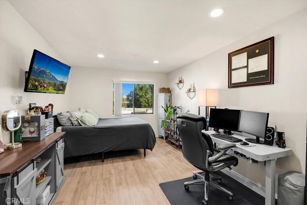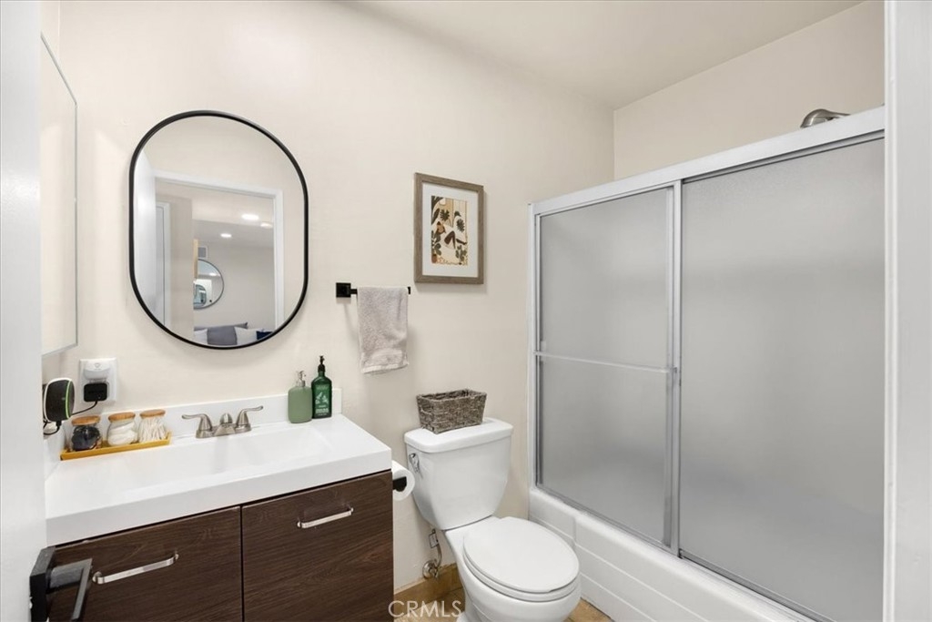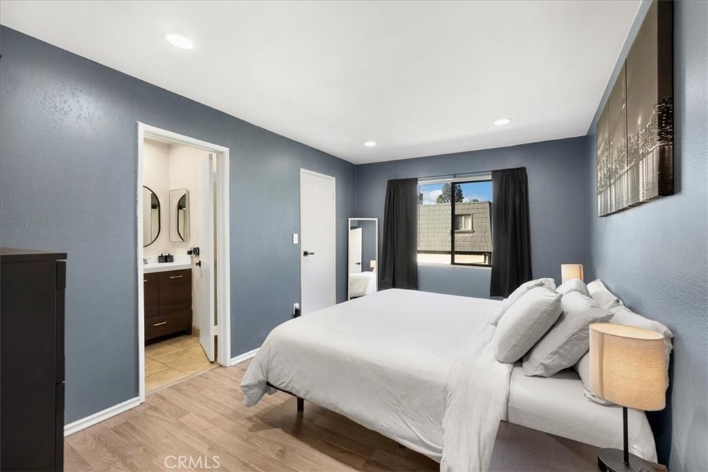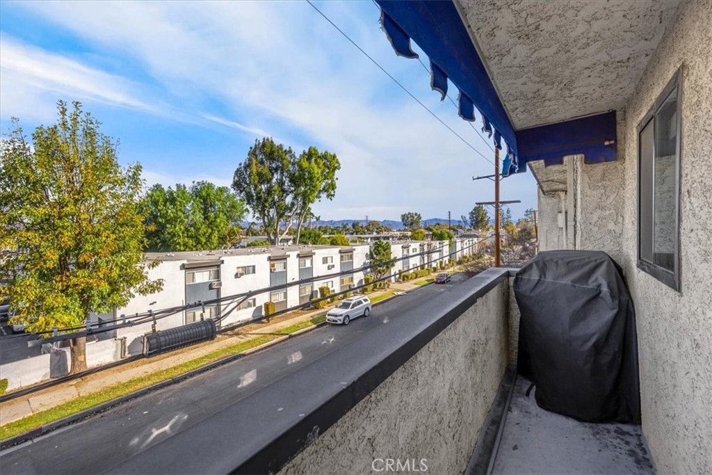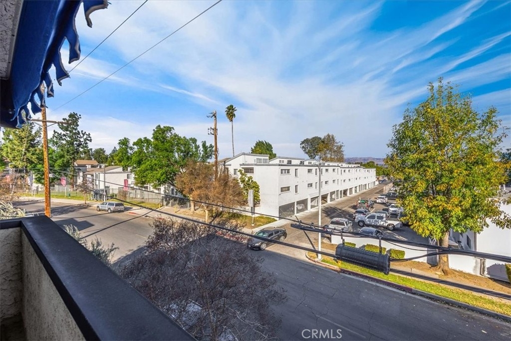 This top-floor, end-unit condo boasts a spacious 2-bedroom, 2-bathroom layout with an open floor plan designed for modern living. Step inside to discover laminate floors, a remodeled kitchen featuring sleek stainless steel appliances, and upgraded bathroom vanities. Bask in the abundant natural light streaming through the windows, or step onto your private balcony—perfect for BBQs or simply unwinding. Enjoy the added comfort of a rare HVAC system, along with smart home upgrades like a Nest thermostat and Blink doorbell. Plus, this is one of only six units in the community offering two assigned covered parking spaces. Tarzana Plaza amenities include a community pool & spa, two laundry rooms on each level, and bbq area. HOA fees also cover water, sewer, and trash. Conveniently located near the 101 and 405 freeways and just minutes from Ventura Boulevard, you’ll be close to the best shopping, dining, and entertainment Tarzana has to offer. Don’t miss this opportunity to own a stylish, move-in-ready condo in a prime location!