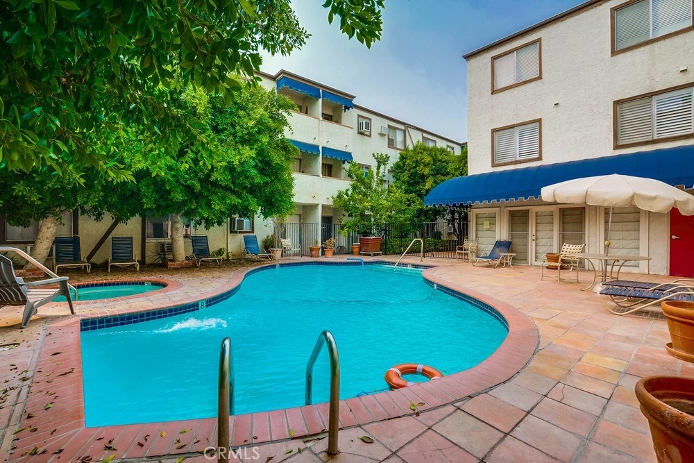 Location, Location, Location. Great investment opportunity to own a 1 BR condo in Tarzana. Walking distance to the metro station, and Ventura Boulevard. Perfect location within the complex itself. Third-floor corner unit with only two sharing walls. Convinient access to emergeny stairs and elevator. Laundry area in every level and two assigned parking spaces. Secure building with a pool, bbq areas, community room and green belts.
