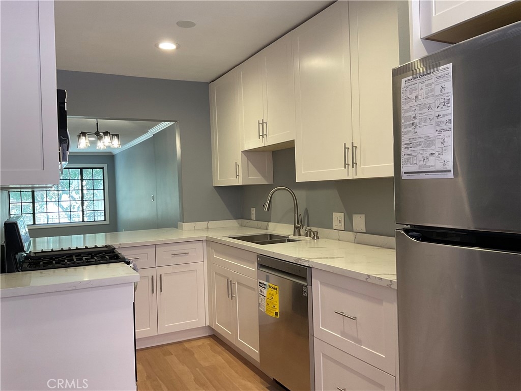 Newly renovated throughout the entire unit. New kitchen with top-of-line appliances/fixture/quartz countertop/cabinets, brand new AC/heating, waterproof vinyl flooring, modern and trendy paint style, etc. + updated baths (vanity, fixture, tub/shower enclosure). Spacious two bedrooms + 2.5 baths. Open and functional floorplan. Shown well, it won't last. Thanks for showing; see you at escrow.