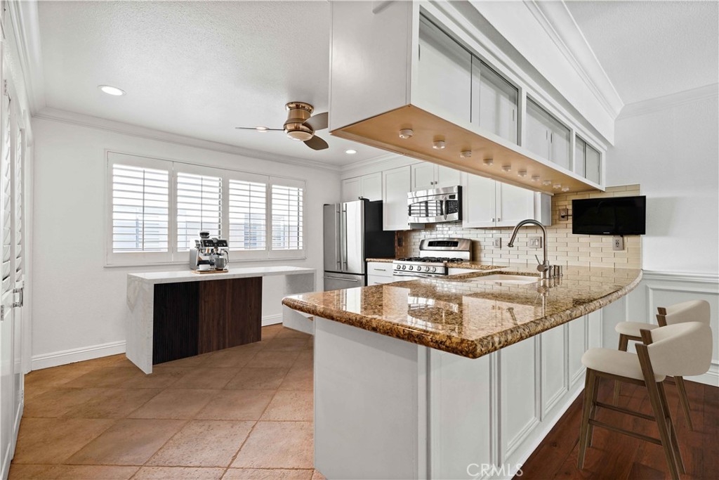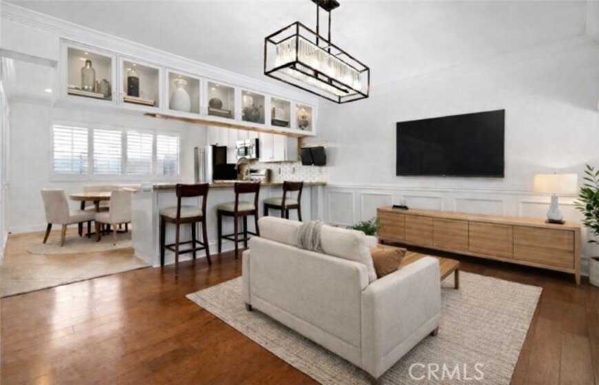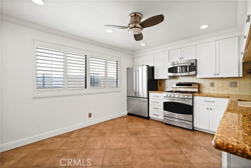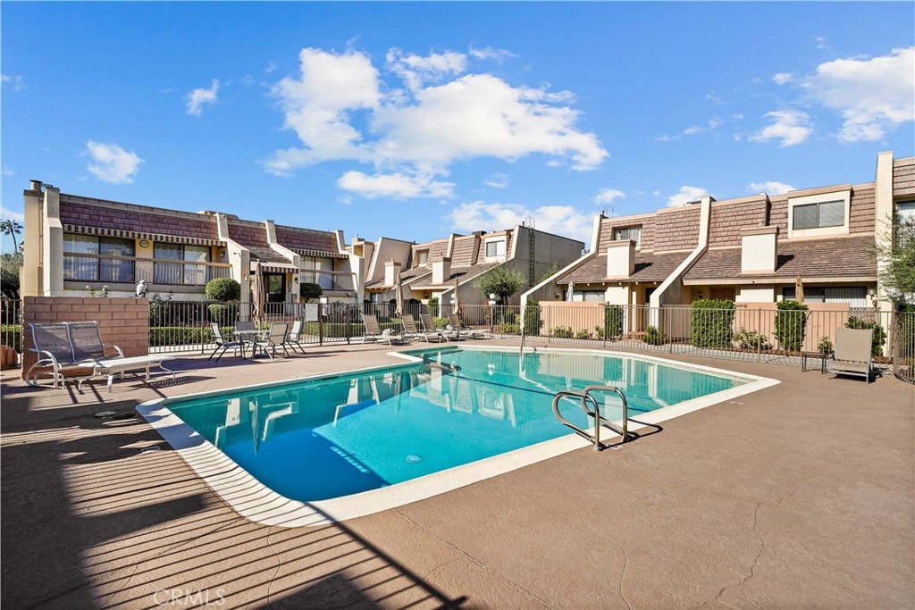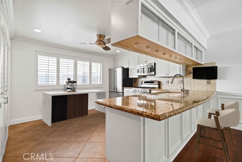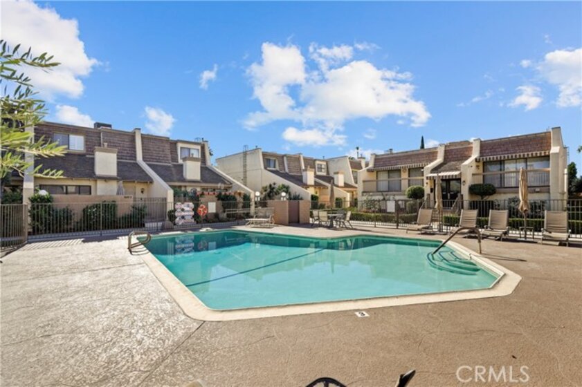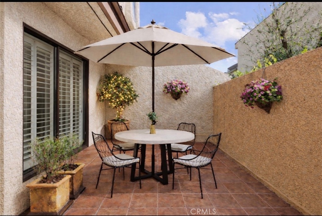 Welcome to this beautifully updated split-level townhome in gated Tarzana Villa North. From the landscaped, secured entry to the bright, multi-level layout, this home delivers a rare mix of privacy, comfort, and style. Note: Some photos have been virtually staged and/or digitally altered to show furnishing and layout possibilities. Unaltered photos are also included for comparison. Relax on the spacious tiled private patio - ideal for coffee, dining, or unwinding. Inside you’ll find high ceilings, rich hardwood floors, plantation shutters, central air/heat, and Minka-Aire ceiling fans. Custom wrought-iron railings, detailed millwork, and crisp white walls create an airy, cohesive feel throughout. The elevated dining area overlooks the living room for an open, loft-style flow, perfect for dining, lounging, or a dedicated home office. The bright kitchen features granite countertops, shaker-style cabinetry, and a wide breakfast bar, with room for a 4-chair dining table plus an island that seats 3–4. All appliances are included, including a near-new matching washer and dryer (pictured). A powder room completes the main level. The fireplace is decorative; a buyer may choose to replace it or install an electric or modern gas unit. Upstairs, the oversized primary suite easily fits a king bed plus seating and offers a walk-in closet with custom built-ins. The ensuite bath includes a long double-sink vanity, private water closet, and walk-in shower. The second bedroom features high ceilings, a cedar-lined closet with added cabinetry, and a balcony overlooking the pool. A natural-stone tiled full bath with tub/shower serves the upstairs hall. Recent upgrades include: new washer/dryer, 2024 water heater, Genie garage door opener (3 remotes), Nest smart thermostat, and A/C (2017). Everyday convenience sets this home apart: mail is delivered directly into the garage, and trash pickup is right outside the garage door, no long walks. Enjoy a gated, well-kept community with a calm, resort-like feel close to everything Tarzana has to offer.