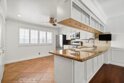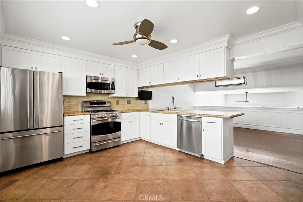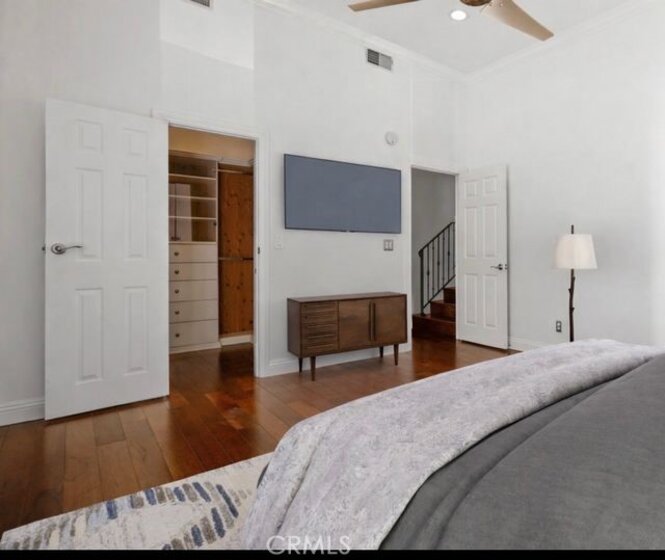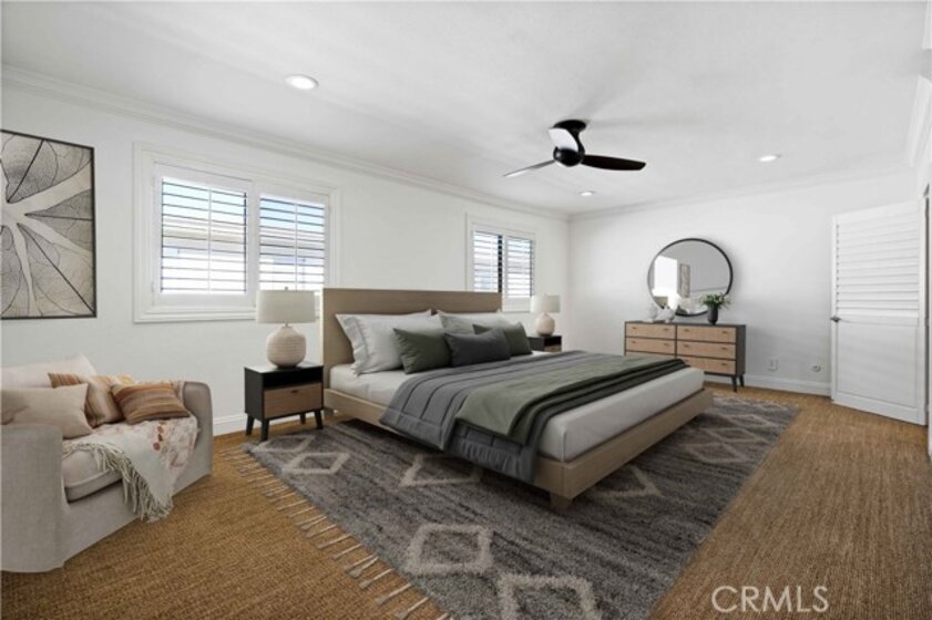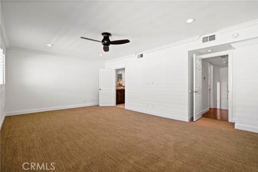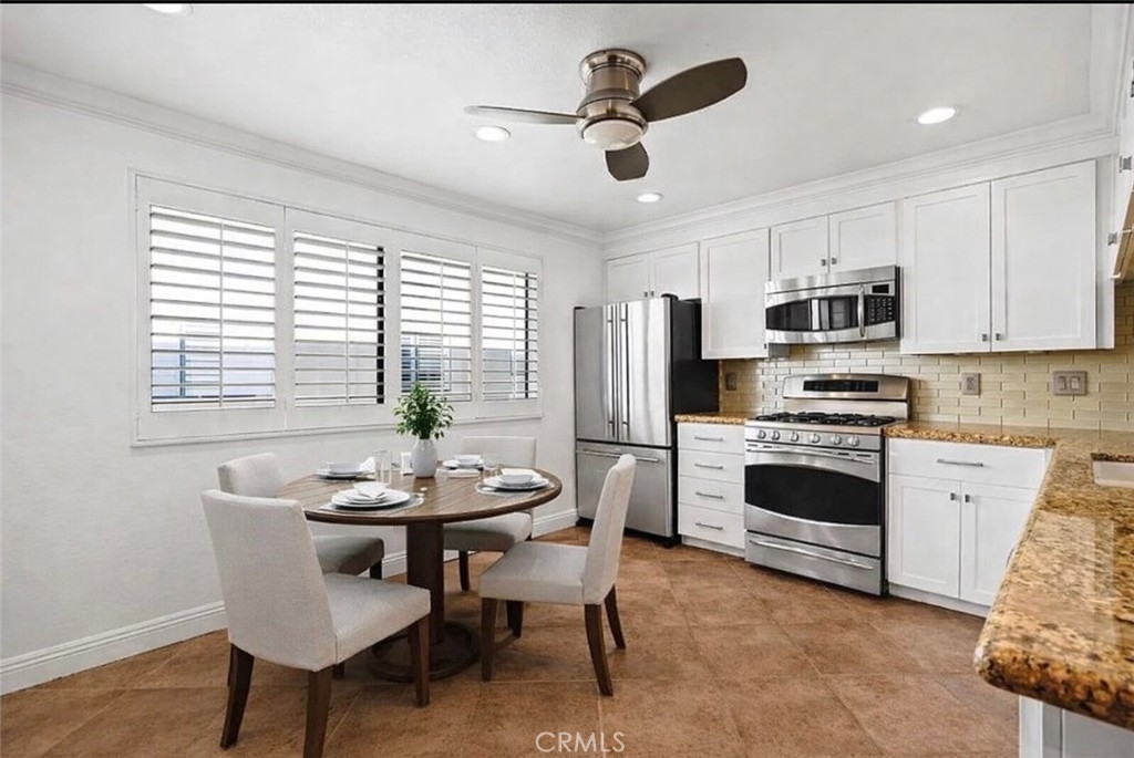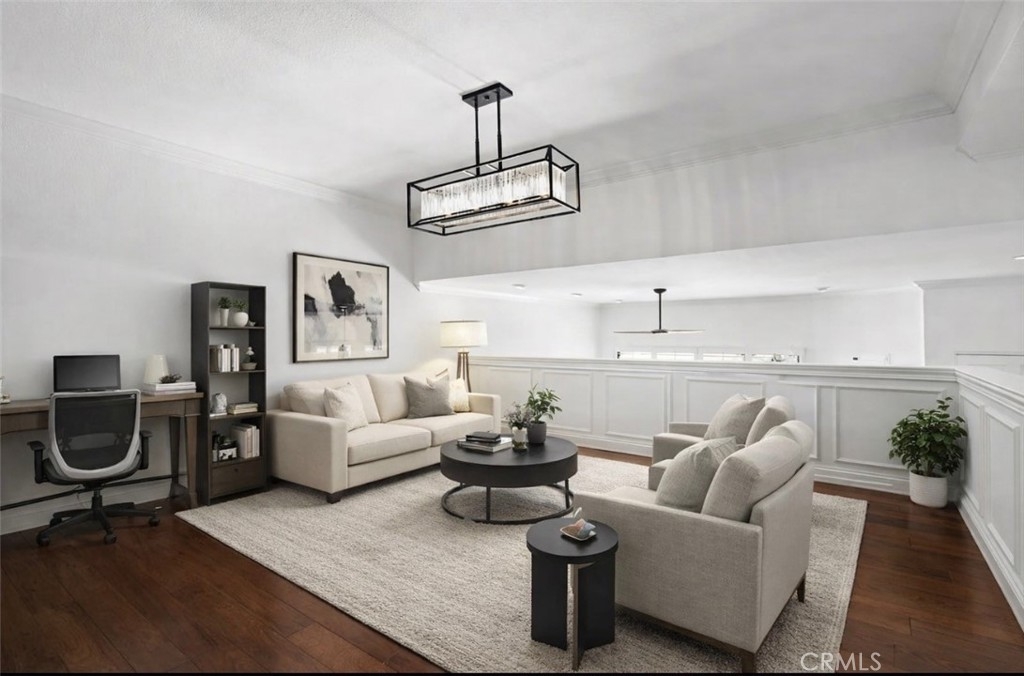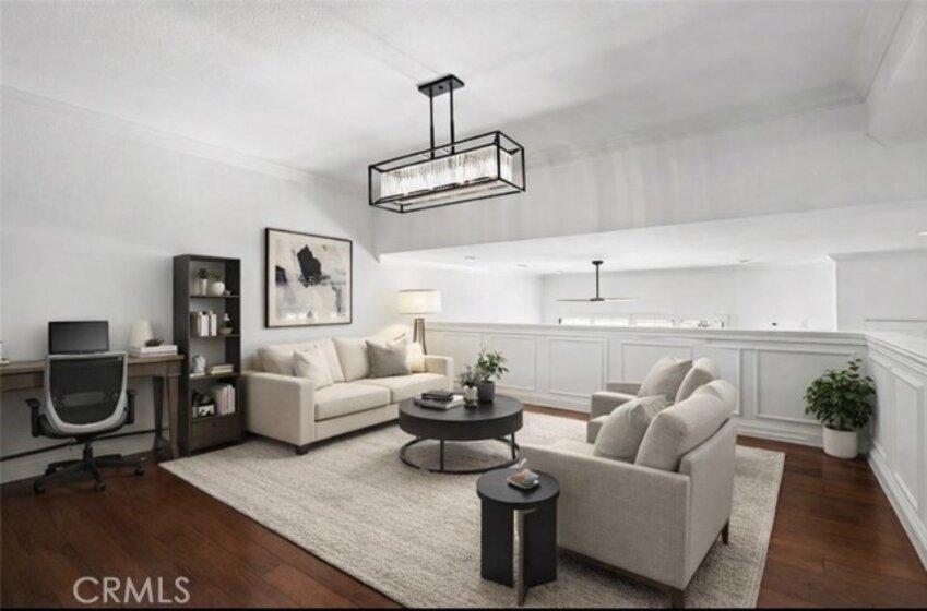 Welcome to this beautifully updated split-level townhome in gated Tarzana Villa North. From the landscaped, secured entry to the bright, multi-level layout, this home delivers a rare mix of privacy, comfort, and style. Note: Some photos have been virtually staged and/or digitally altered to show furnishing and layout possibilities. Unaltered photos are also included for comparison. Relax on the spacious tiled private patio - ideal for coffee, dining, or unwinding. Inside you’ll find high ceilings, rich hardwood floors, plantation shutters, central air/heat, and Minka-Aire ceiling fans. Custom wrought-iron railings, detailed millwork, and crisp white walls create an airy, cohesive feel throughout. The elevated dining area overlooks the living room for an open, loft-style flow, perfect for dining, lounging, or a dedicated home office. The bright kitchen features granite countertops, shaker-style cabinetry, and a wide breakfast bar, with room for a 4-chair dining table plus an island that seats 3–4. All appliances are included, including a near-new matching washer and dryer (pictured). A powder room completes the main level. The fireplace is decorative; a buyer may choose to replace it or install an electric or modern gas unit. Upstairs, the oversized primary suite easily fits a king bed plus seating and offers a walk-in closet with custom built-ins. The ensuite bath includes a long double-sink vanity, private water closet, and walk-in shower. The second bedroom features high ceilings, a cedar-lined closet with added cabinetry, and a balcony overlooking the pool. A natural-stone tiled full bath with tub/shower serves the upstairs hall. Recent upgrades include: new washer/dryer, 2024 water heater, Genie garage door opener (3 remotes), Nest smart thermostat, and A/C (2017). Everyday convenience sets this home apart: mail is delivered directly into the garage, and trash pickup is right outside the garage door, no long walks. Enjoy a gated, well-kept community with a calm, resort-like feel close to everything Tarzana has to offer.