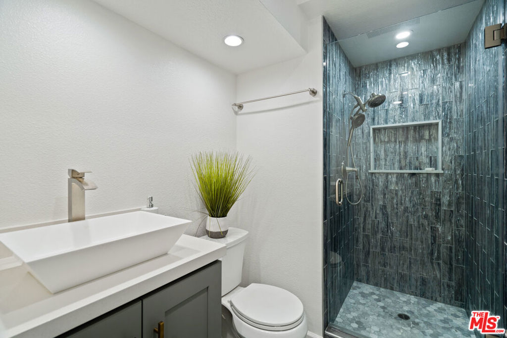 Stunning completely remodeled 3bedroom/ 3bathroom townhome with attached 2-car private garage. As you walk in you are greeting by bright living room with a stunning fireplace and high ceilings, that opens up to the large outdoor patio area. As you walk up glass railing you reach the main level which enjoys a full bedroom and bathroom, a gorgeous dining room with bar, chandelier and feature wall, and best of all, the updated kitchen boasting of stainless steel appliances, new white shaker cabinets and quarts countertops. The top level has a large and bright primary bedroom with walk-in closet and completely remodeled bathroom along with a second on-suite bedroom and remodeled bathroom with a large built-in closet. Other amenities include recessed lights, new flooring and doors, epoxy floors in attached garage, newer water heater, community pool and recreation room! Close to shopping, transportation and houses of worship. Don't miss!
