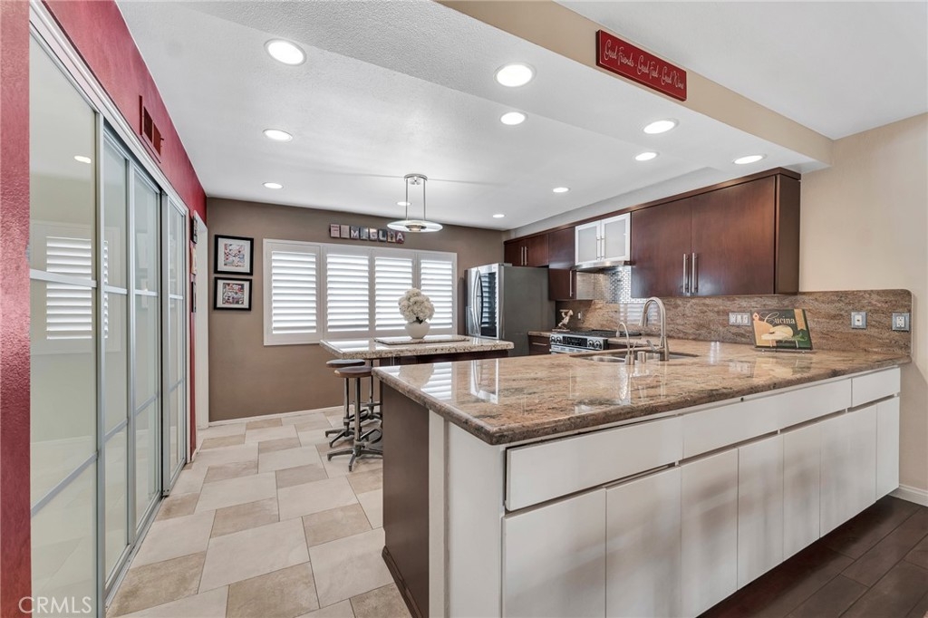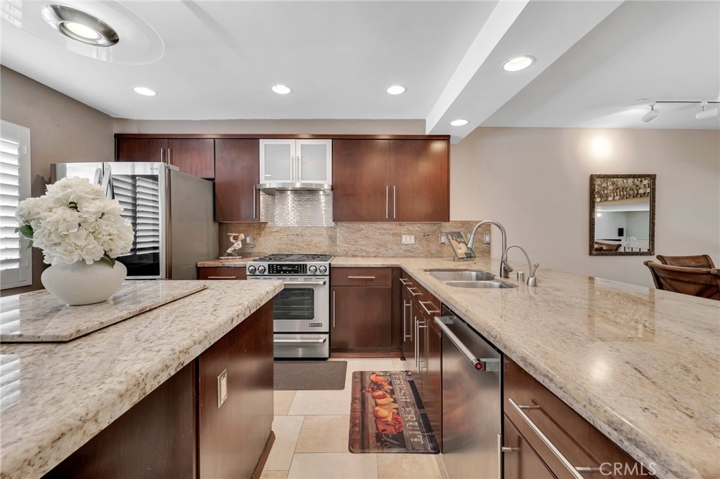 Welcome to this beautifully updated, spacious 2-bedroom, 2.5-bathroom townhome that offers 1,655 sq ft of comfortable living in the highly sought-after gated community of Tarzana Villa South. Featuring an open floor plan, private 2 car attached garage, ground floor with no one above or below, with a prime location. The bright and inviting living room showcases a remodeled stone-tiled fireplace and sliding glass door that leads to a large private patio—perfect for outdoor entertaining. The chef-inspired kitchen is a true show stopper that features granite countertops, a large island, stainless steel appliances, upgraded exhaust system, and a large pantry with custom glass doors. A separate laundry room just off the kitchen provides ample storage and convenience. Upstairs, the grand primary suite boasts a spacious walk-in closet with built-ins along with a second large closet with custom glass sliding doors.The en-suite bath has double sinks, a large vanity area, and a steam shower. The oversized second bedroom features a walk-in closet with built-ins and a private balcony—ideal for morning coffee or evening relaxation. Additional upgrades include a new furnace, HVAC system, new carpet, updated wood flooring, a new water heater with thermal expansion tank, custom shutters throughout, and updated light fixtures. Resort style living with community amenities that include a pool, spa, tennis courts,clubhouse/rec room and guest parking. Low HOA dues include water, trash, and earthquake insurance. Centrally located to restaurants, shops,grocery,schools,parks. This is one you won’t want to miss!