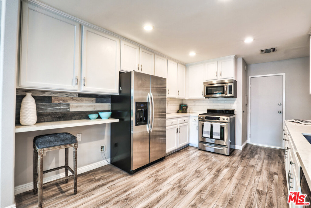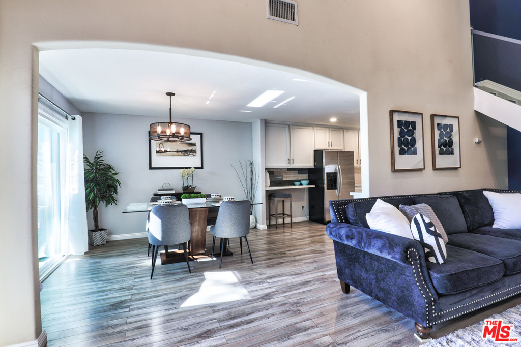 Wow! This gorgeous remodeled townhome feels like a house with a welcoming front walk, 2-car attached garage, and prime end unit location close to guest parking, green area and the beautiful pool. Step inside for a grand entrance into the living room with 2-story cathedral ceilings and light filtering in from the North, East and West. The living room features a gas fireplace with custom shiplap surround, sliding glass doors to the private patio, enlarged archway to the dining room and impressive 2-story gallery walls to showcase your decor. Gorgeous remodeled kitchen expanded for additional storage and counter space with quartz countertops, Blanco stone sink, stainless appliances and touchless kitchen faucet. Convenient powder room located by the front entry. Primary and Guest bedrooms upstairs. The primary bedroom suite doubles as a private retreat measuring nearly 13 feet by 20 feet with high cathedral ceiling, walk-in closet by California Closets, and a stunning bathroom remodeled with dual pedestal sinks, gorgeous soaking tub, rainfall shower, river rock accents, wood-look tile floors. Recessed lighting and dual paned windows throughout. And new HVAC and ductwork installed in 2019! Well-maintained gated complex. Come see!