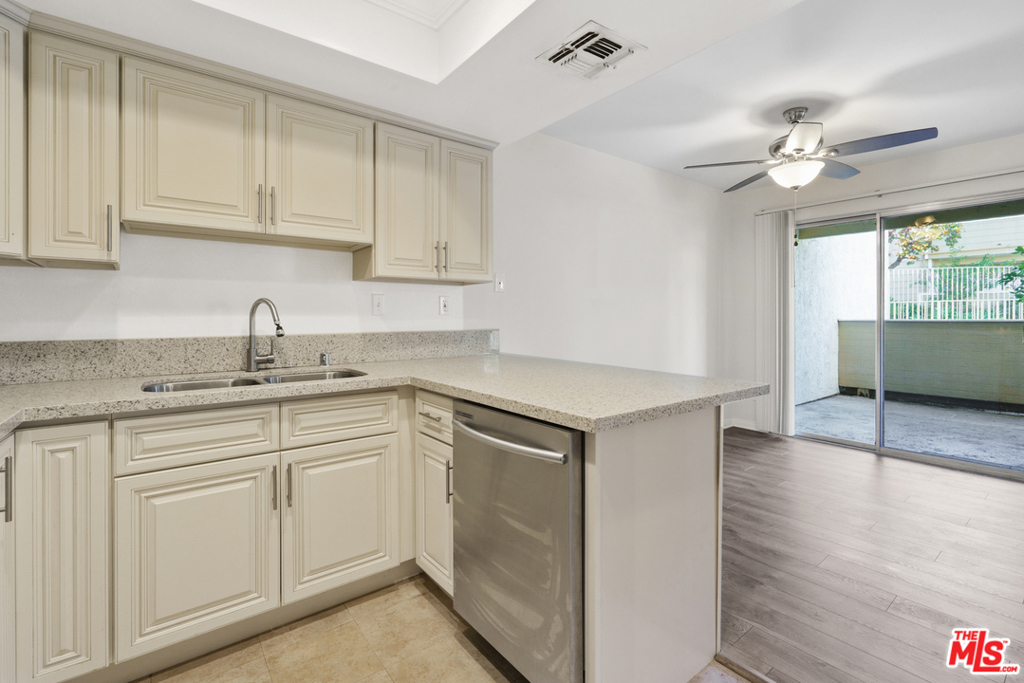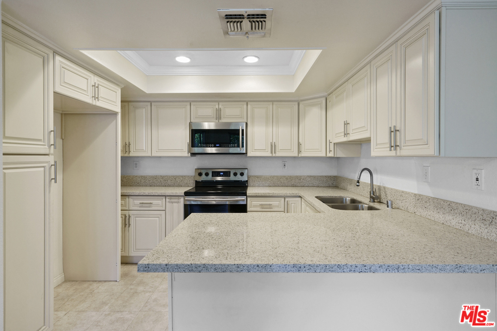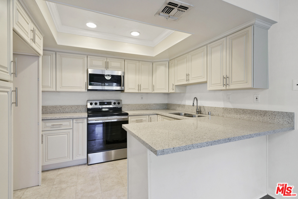 Fantastic unit in the Tarzana Woods complex minutes from popular dining, supermarkets, and easy freeway access. This spacious unit offers 2 bedrooms and 2 bathrooms. Gorgeous, remodeled kitchen with newer cabinets, quartz countertops, stainless steel appliances, and HVAC system. Open floor plan with a sliding door off the dining area that leads to an inviting exterior patio. Newer laminate flooring in the living room, dining area, hallway and bedrooms. Side by side washer and dryer closet with newer washer and dryer included. Nicely sized master bedroom with two closets. Gated community features lush grounds with a community pool & spa and guest parking. Two covered tandem parking spaces along with a large storage closet.