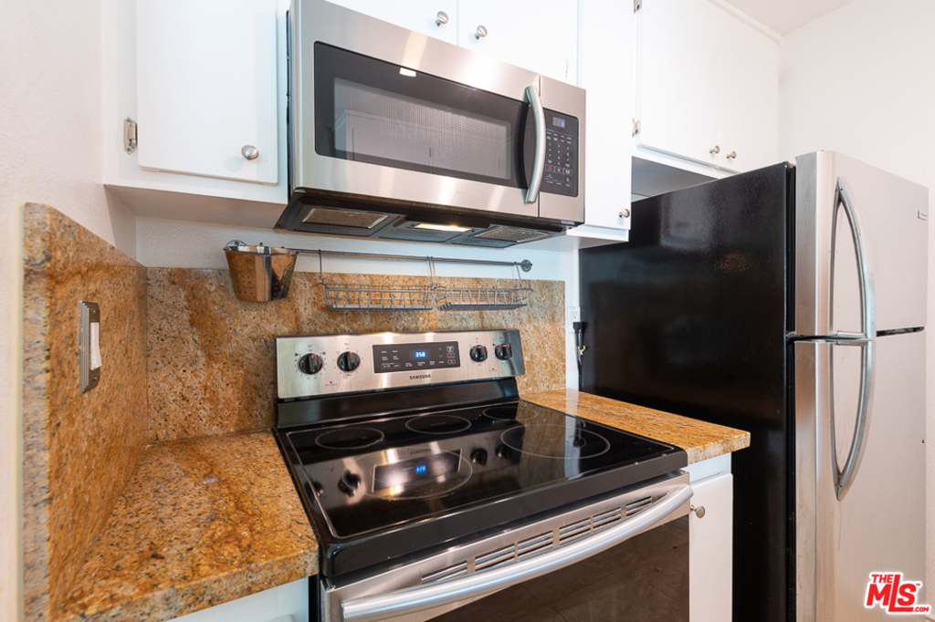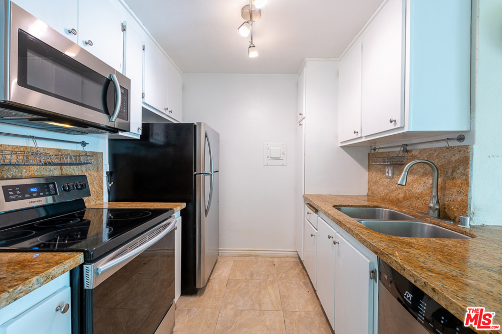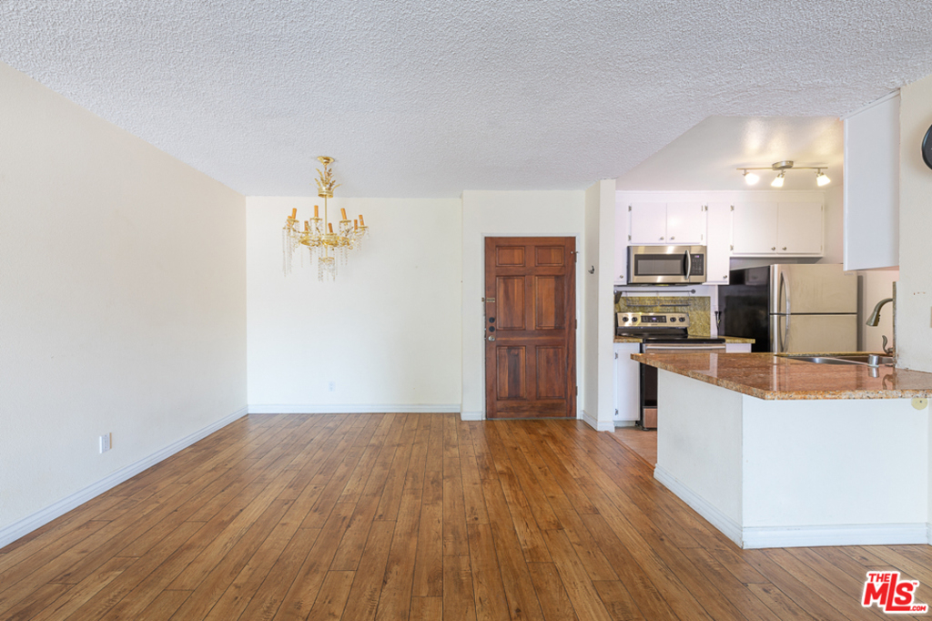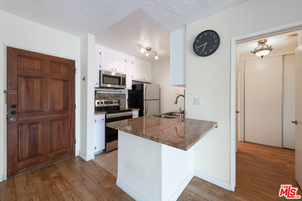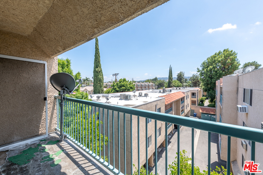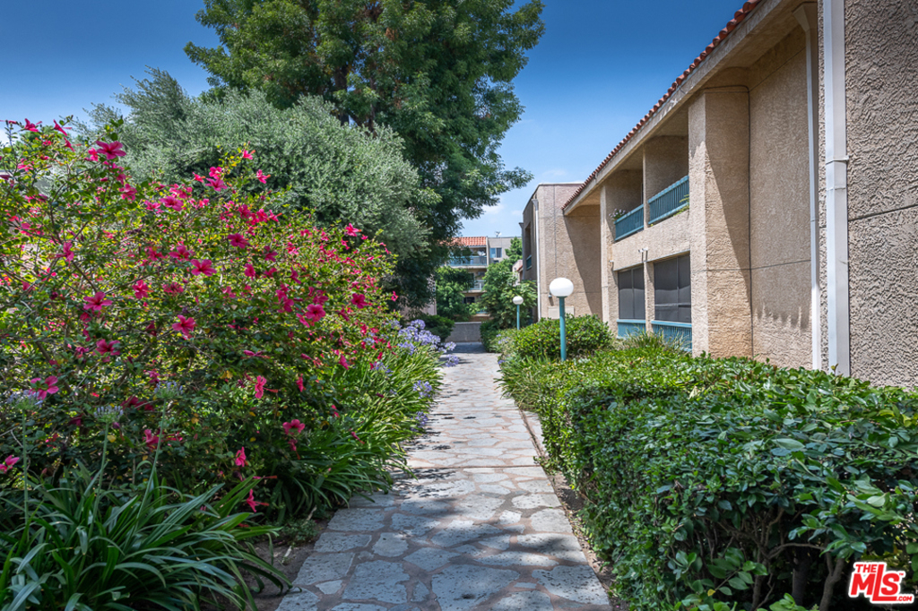 Time to buy your first home in the beautiful Villa Lorena complex of Tarzana! Decompress from your day as you meander through peaceful pathways surrounded by mature plants and trees, past the huge pristine pool and spa area, and you are home. This one-bedroom, third-level unit feels spacious and light with a large living and dining area. The kitchen includes stainless-steel appliances and has a breakfast bar. Stylish engineered-wood flooring in the living area is light-colored honey with hand-honed-like detailing. The living area leads to a balcony that overlooks a small parking area, rooftops and beyond. The community laundry and elevator are conveniently located near the unit. This beautifully maintained complex is within close proximity to Cedars-Sinai Tarzana Medical Center, the 101 Freeway, shopping and dining.