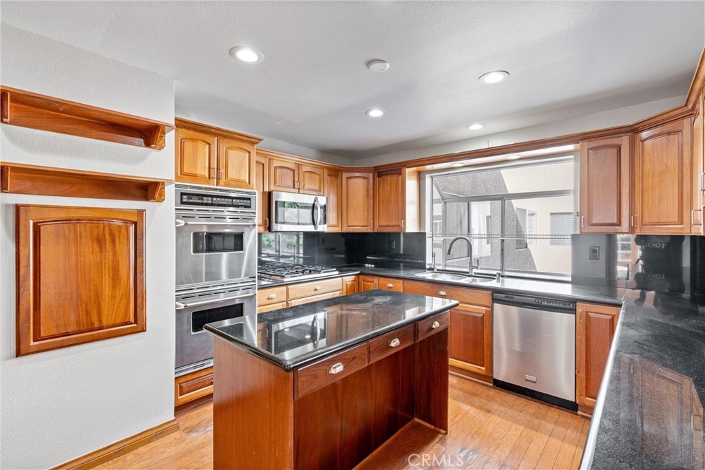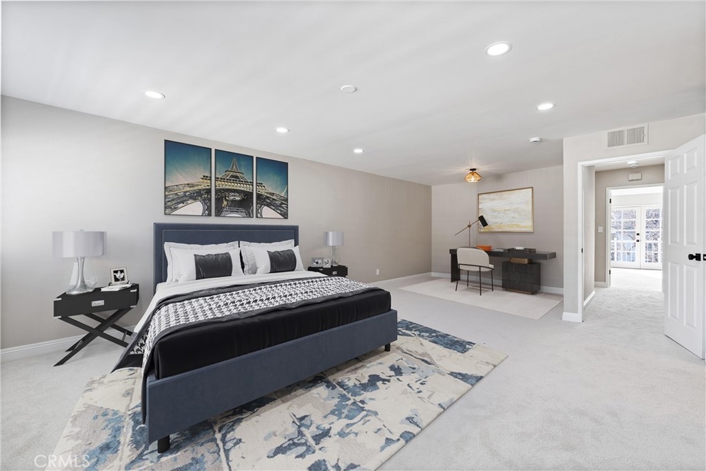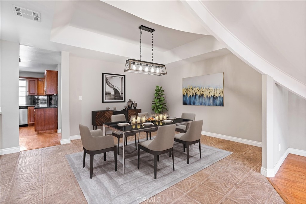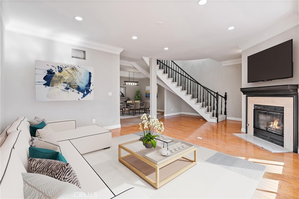 Discover Windemere—one of the most expansive and charming townhomes in Tarzana. This beautifully updated 2,140 sq. ft., 2-bedroom + den, 2.5-bath home is situated in a charming 24-unit Victorian/Cape Cod-style community. Step inside to find an inviting open-concept living space featuring a cozy gas fireplace with a wood mantel and marble hearth, plantation shutters, recessed lighting, and French doors leading to a private balcony. The formal dining room is bathed in natural light and includes a built-in wet bar—perfect for entertaining. The kitchen boasts stainless steel appliances, a center island, ample cabinetry and counter space, and a picturesque garden window. Adjacent to the kitchen, a versatile den (ideal as a home office, gym, or guest room) and a stylish powder room completes the main level. A stunning spiral staircase leads to the second floor, where you’ll find two generously sized bedrooms. The primary suite is a true retreat, featuring a large walk-in closet, spacious living area, en-suite bath with a soaking tub, walk-in shower, and dual sinks. The second bedroom features 2 separate walk-in closets, french doors leading to its own balcony, and a private bath featuring dual sinks and a tub/shower combo. This home also includes a private, direct-access 2-car garage with abundant storage, recessed lights, washer/dryer, and a convenient dumbwaiter to effortlessly transport groceries to the kitchen and laundry to the garage level. Located just minutes from shopping, dining, and freeway access, this gated community offers resort-style amenities, including lush landscaping, a sparkling pool, spa, and ample green space. Don’t miss this opportunity to own a spacious, high-end townhome in one of Tarzana’s most desirable communities!