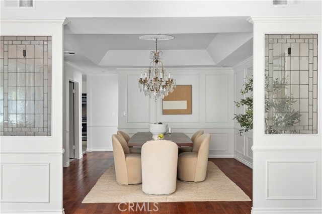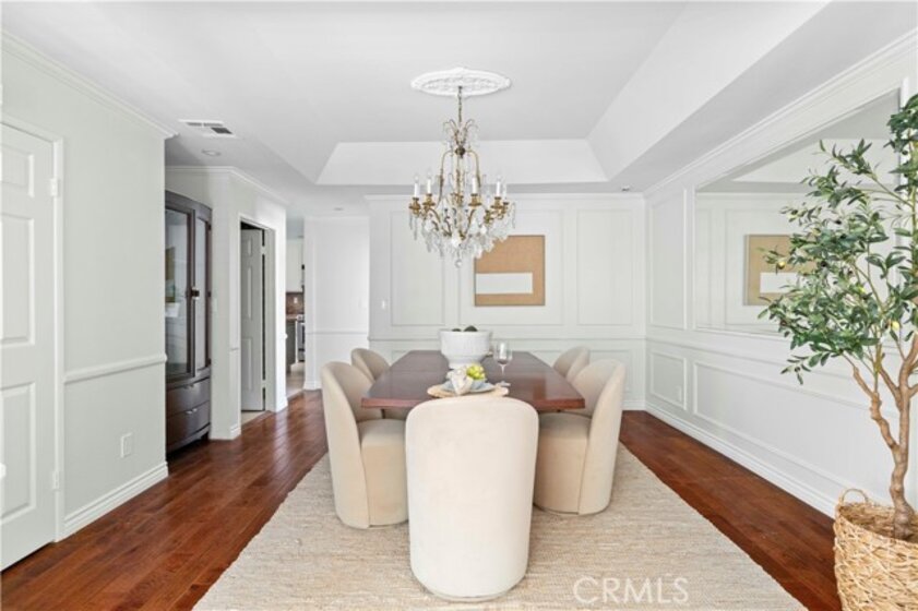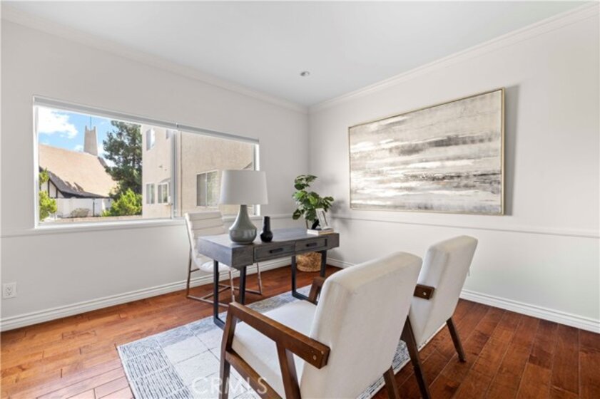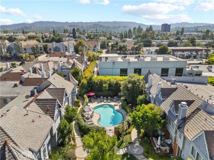 Welcome to this truly special and architecturally unique 4-bedroom, 2.5-bath townhome offering 2,356 sq ft of thoughtfully designed living space in the beautifully landscaped, gated enclave of Windemere—a hidden gem with only 24 residences. This light-filled home is full of character and charm, from its elegant turrets and curved staircase to classic picture moldings, chair rails, and detailed exterior finishes that set it apart from anything else in L.A. Inside, enjoy a perfect blend of comfort and sophistication. The expansive open-concept living and dining areas are ideal for entertaining, with a cozy fireplace and French doors that lead to a private patio—perfect for morning coffee or evening relaxation. The gourmet kitchen is a chef’s dream, featuring granite counters, a center island, stainless steel appliances, and a dumbwaiter from the oversized 2-car garage for effortless unloading. Recent updates include a new HVAC system (2025), dishwasher (2024), garage door opener (2024), and fresh interior paint. Gleaming hardwood floors run throughout the home, enhancing its timeless appeal. The beautifully updated powder room on the main floor adds a refined touch for guests. Upstairs, you’ll find generously sized bedrooms—including an impressive primary suite with a spacious walk-in closet—offering the perfect retreat at the end of the day. Each room reflects thoughtful planning and optimal use of space, making this home truly stand out. Windemere is a tranquil oasis nestled in the bustle of the Valley, featuring lush gardens and a spacious gated pool that feels worlds away, yet just moments from Ventura Blvd. and convenient access to the 101 freeway. Enjoy being close to shopping, grocery stores, restaurants, and top medical facilities. This is more than a home—it’s a lifestyle.