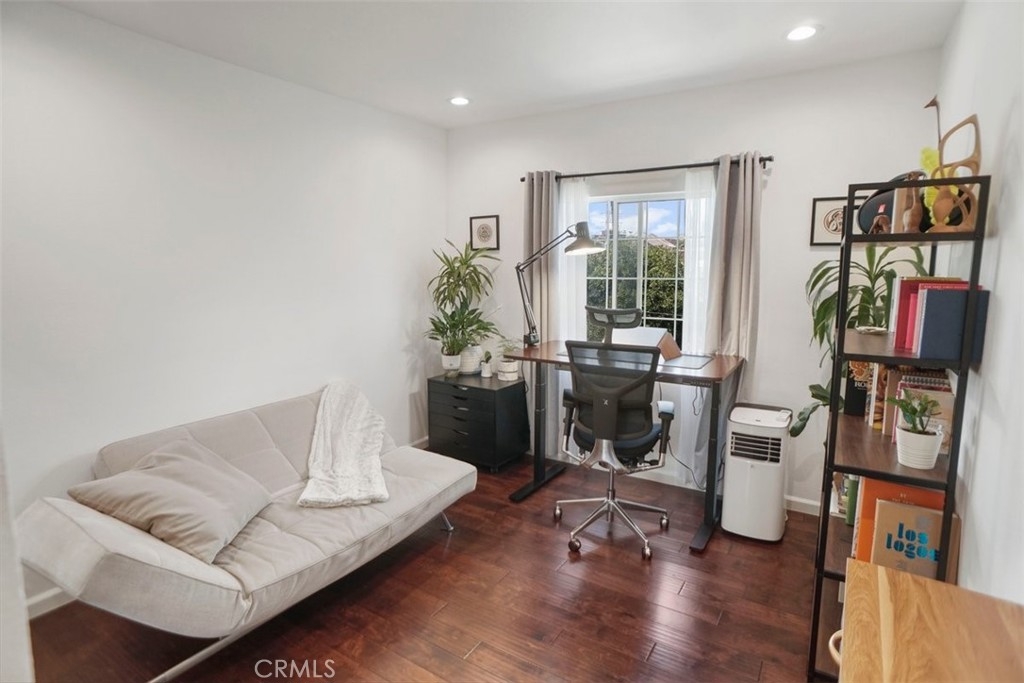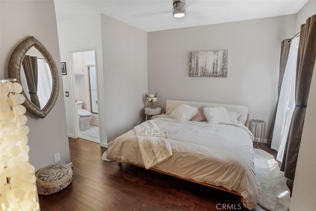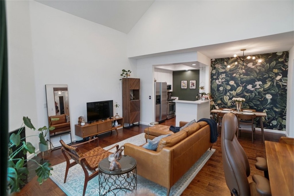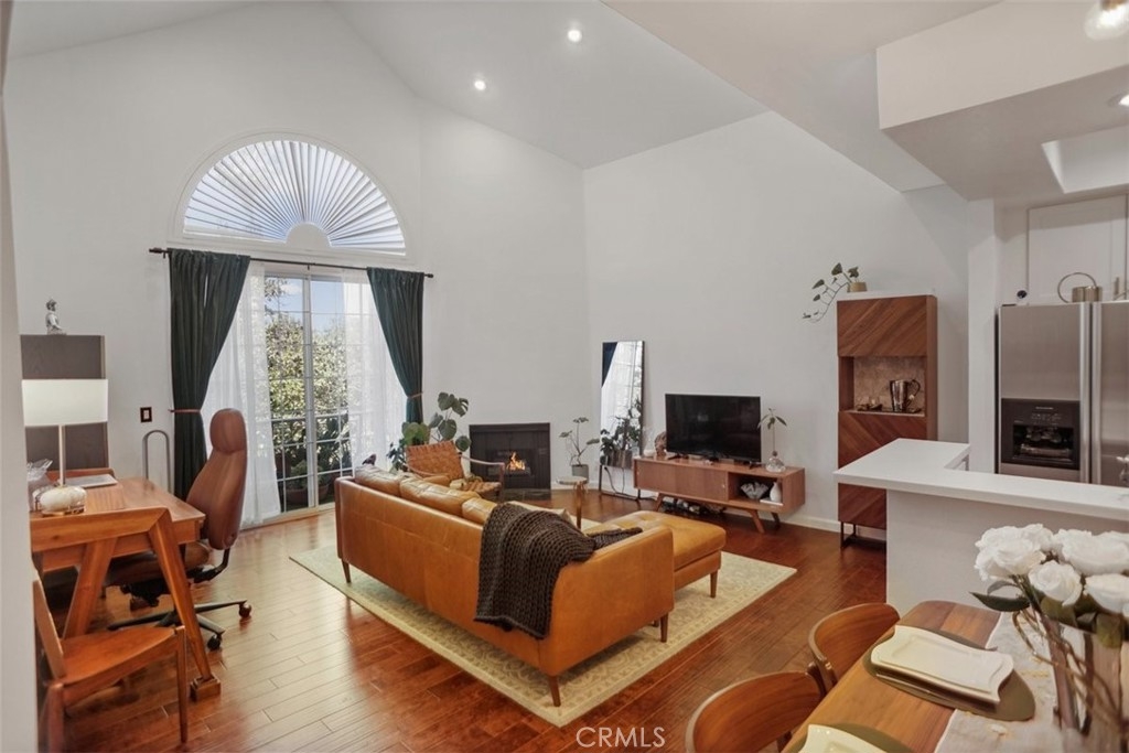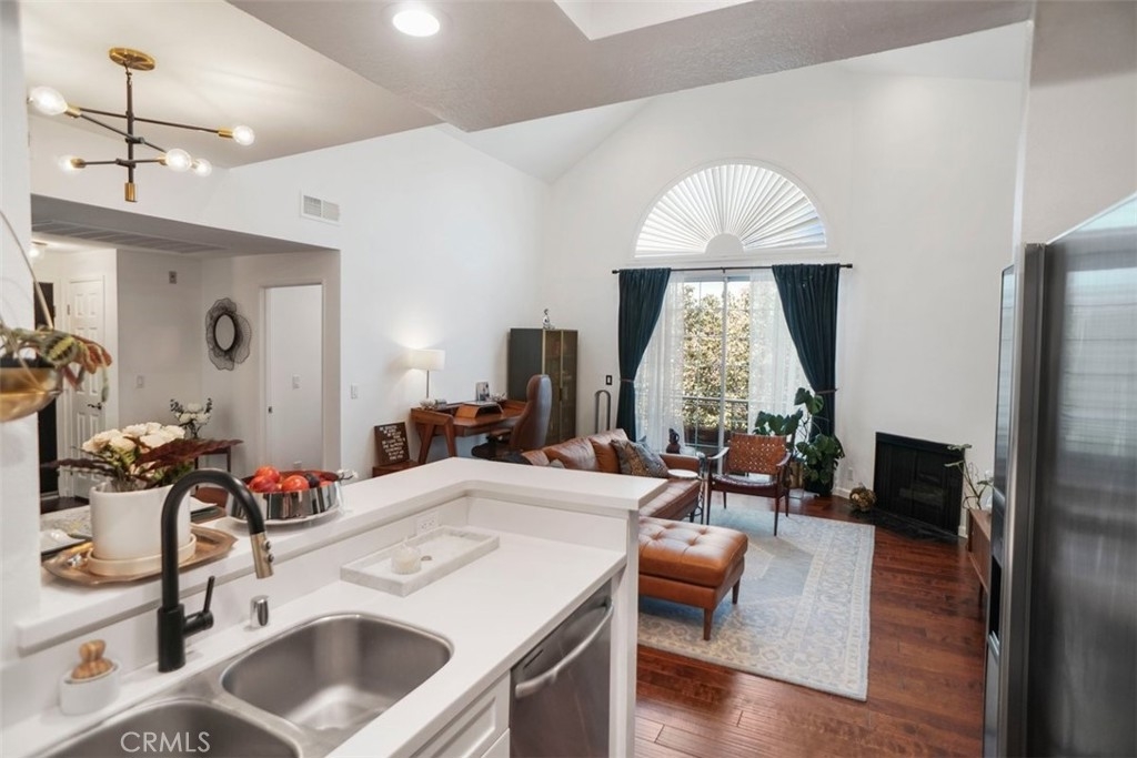 AMAZING 2 + 2 Very well cared upper unit in prime Tarzana. The second you enter and view the high vaulted ceilings, you know you have found your home. Natural sunlight brightens this spacious open concept unit. You will appreciate the numerous upgrades and high-end finishes, Including smart door lock with a camera and fingerprint ID - Upgraded thermostat- Newer A/C unit and heat pump - Newer electric box/panel up to code -Newer Stainless steel kitchen appliances include refrigerator, gas stove, dishwasher, and microwave - Newer washer/dryer - White smooth surface kitchen countertops – Newer LED recessed lighting throughout the unit – Newer light fixture and bedroom ceiling fan - LED lights in bathrooms - Hardwood floors. Enjoy the high vaulted ceiling with a beautiful arched window in the living room and a sliding door leading to the balcony. Both bedrooms are bright and feature dual-pane, energy-efficient windows. This gem is located in the heart of Tarzana, a block from Ventura Boulevard, Near great shopping, schools, and hospital. This unique unit is a must-see to appreciate!