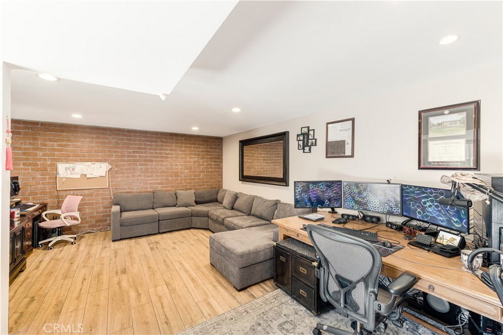 Welcome to your new home nestled in the gated community of Lindley Garden. It’s a lovely corner townhome with desirable floor plan featuring only one common wall, spanish oak tile floors throughout the main level, convenient half bath down, large living room with brick accent wall, and a nice patio off the dining room perfect for relaxing or entertaining guests. The galley style kitchen features wood cabinetry, granite counters, and stainless steel appliances. The two spacious bedrooms are upstairs. The primary bedroom provides a full en suite bathroom. The loft area is the perfect flex space, offering choices such as an office area perfect for working from home, or possibly an in-home gym space. The second bedroom has plenty of space for kids, guests, or possibly a roommate. There is a second full bathroom in the hall right next to the second bedroom. The in-unit laundry is located in the connected private 2 car garage, which also has ample storage space. The community features a beautiful pool, well maintained grounds, and recreational area. It’s located in the heart of Tarzana with convenient access to great restaurants, business establishments, and transportation.