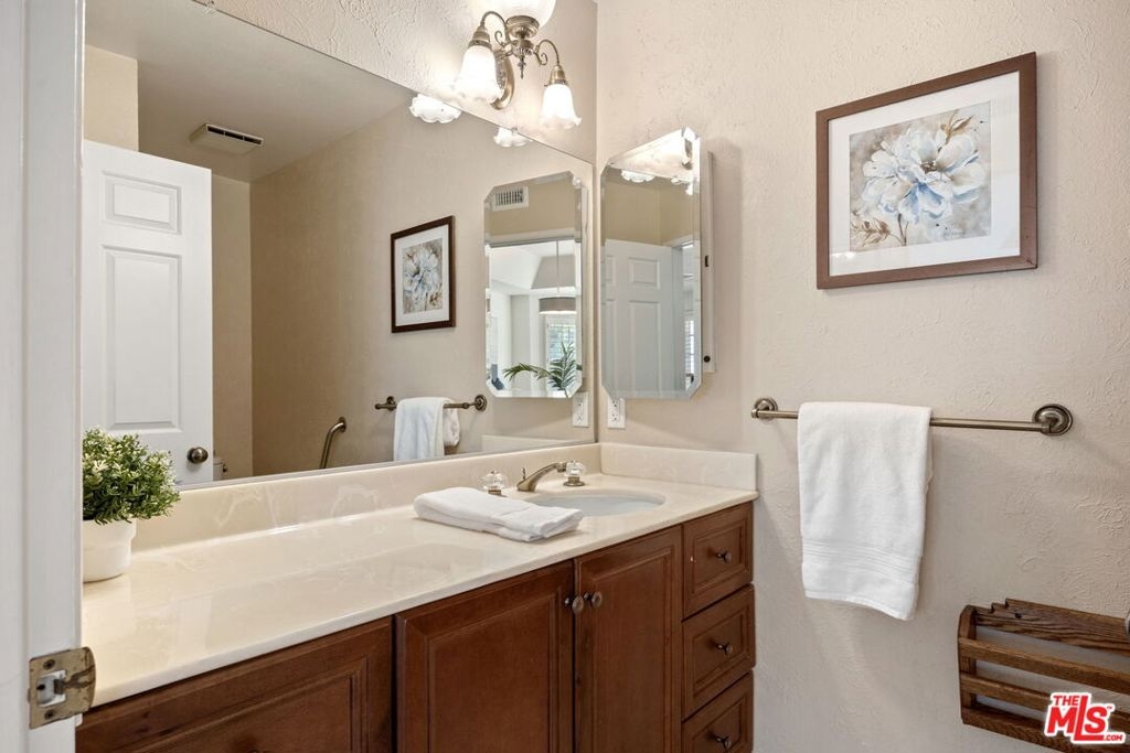 Priced to sell! Welcome to this beautifully updated over 2,200 sqft townhome in the heart of Tarzana, offering comfort, style, and convenience in a secure gated community. Set inside a Cape Cod-style community, this residence makes a striking first impression with its charming architectural details and lush landscaping. Inside, you'll find updated interiors with brand-new vinyl flooring that flows seamlessly throughout the main living spaces. The inviting living room features a cozy fireplace, recessed lighting, and a cascading staircase, creating an ideal setting for both everyday living and entertaining. The adjacent dining area is bathed in natural light from the bay windows, while the spacious kitchen offers abundant cabinetry, tile counters, a center island, and a convenient pass-through. A wet bar and powder room on the main level add to the home's functionality. Upstairs, the expansive primary suite serves as a true retreat, complete with a walk-in closet and an ensuite bath featuring dual sinks, a soaking tub, and a separate shower. Two additional bedrooms are generously sized with ample closet space, accompanied by another full bathroom with dual vanities. A versatile bonus room provides the perfect space for a home office, media room, or guest quarters. Additional highlights include plantation shutters, in-unit laundry, and direct access to a private 2-car garage. The well-maintained community offers a tranquil environment while being just minutes from Tarzana's and Encino's best shopping, dining, schools, and freeway access.