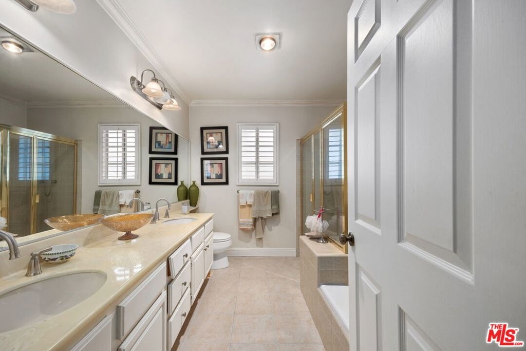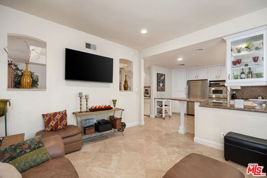 Welcome to this elegant and inviting townhome featuring generous living spaces, timeless finishes, and a great location.. The main level offers an open and airy layout with high ceilings, recessed lighting, plantation shutters, and warm travertine flooring throughout. A cozy fireplace anchors the living room, which opens seamlessly to a charming private patio ideal for morning coffee or intimate entertaining. The formal dining area sits beneath a sculpted tray ceiling and flows effortlessly into the family room and kitchen. The expansive cook's kitchen is complete with stainless steel appliances, double ovens, abundant cabinetry, granite countertops, recessed lighting, and a breakfast bar perfect for casual dining. Upstairs, you'll find oversized bedroom suites with excellent natural light and multiple built-ins. The primary suite offers incredible scale with room for a full sitting area or office, dual closets, crown molding, and an attached vanity dressing area. The primary bathroom includes dual sinks, a soaking tub, and a walk-in shower. An additional guest bedroom is equally spacious and well-appointed, along with a hallway bath featuring dual sinks and a tub/shower combination. Additional highlights include: Interior laundry area, Plantation shutters throughout, Multiple built-in desks and storage areas*, Central HVAC, Direct-access private 2-car garage, and a Well-maintained community with a lovely pool. Located moments from the best of Tarzana and Encino shopping, dining, Ventura Blvd amenities, and easy freeway access, this townhome offers exceptional comfort, generous space, and timeless character in one of the Valley's most desirable neighborhoods.