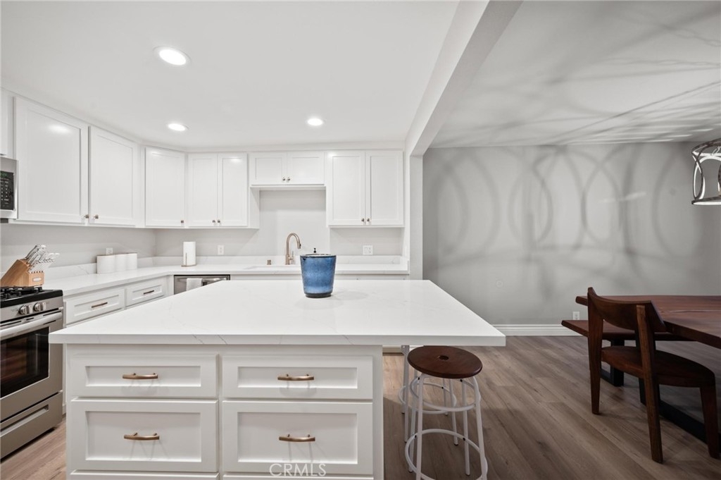 Completely Remodeled! This turn-key single level condo has a large open floor plan and features an astounding gourmet kitchen with custom cabinets, stainless steel appliances, granite counters, spacious island with lots of storage underneath. The dining area is perfect for intimate dinners or larger parties and entertainment. NEW laminate floors and NEW shutters all add to the elegance and appeal. The generous living room encompasses a beautiful and cozy fireplace and a wet bar. Spacious master bedroom, beautiful tubbed bathroom, fresh paint and new laminate floor. The other bedroom has large walk-in closet, fresh paint throughout and laminate floor. Washer/dryer hookups. Sip your wine and relax on the large balcony which invites a lot of light. Or enjoy the sparkling pool / jacuzzi which are steps away, surrounding you with plenty of beautiful greenery. This charming building has very well-maintained common areas ,underground parking and more guest parking. Located a block north of Ventura Blvd, 101 freeway, Cedar Sinai Hospital, gym, Restaurants, shopping, Gelson's, Vons are just a few to name. Gated community pride of ownership. Middle building is away from street.