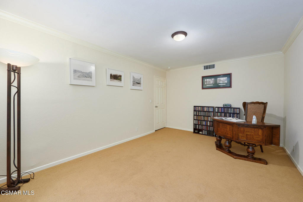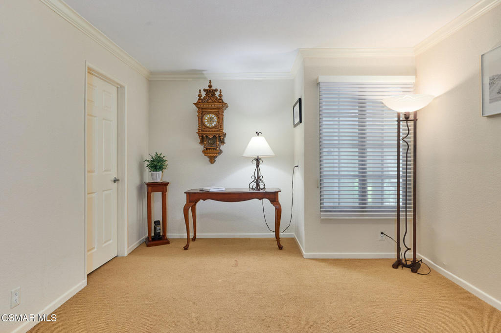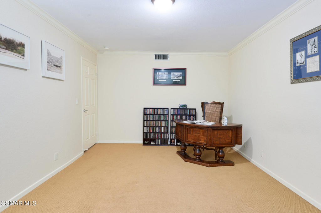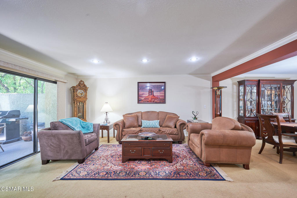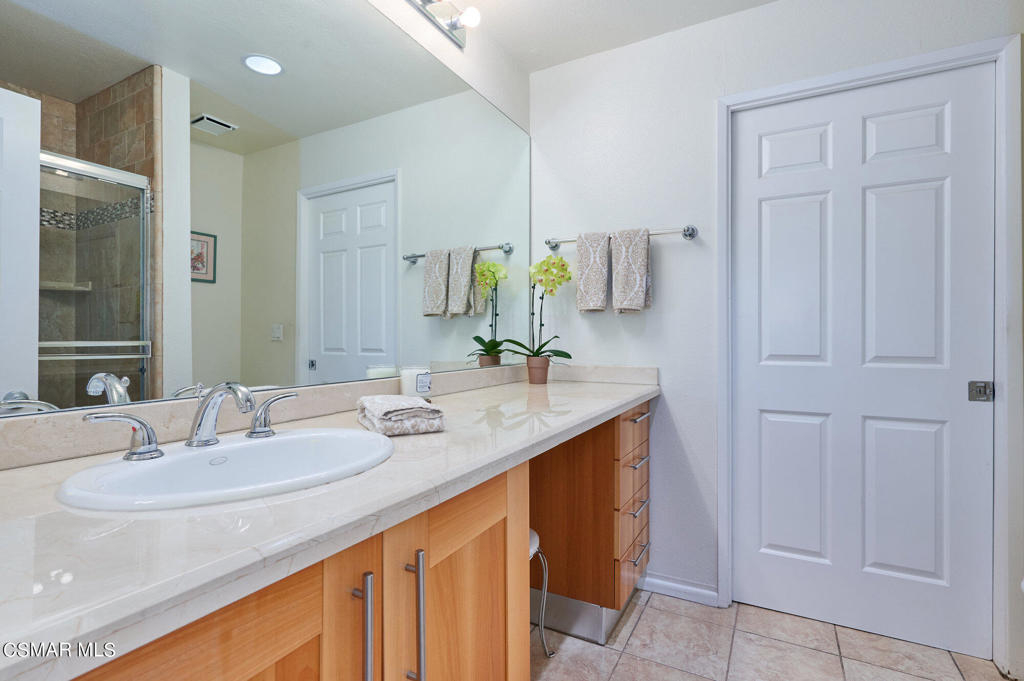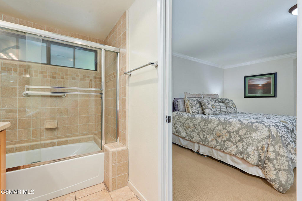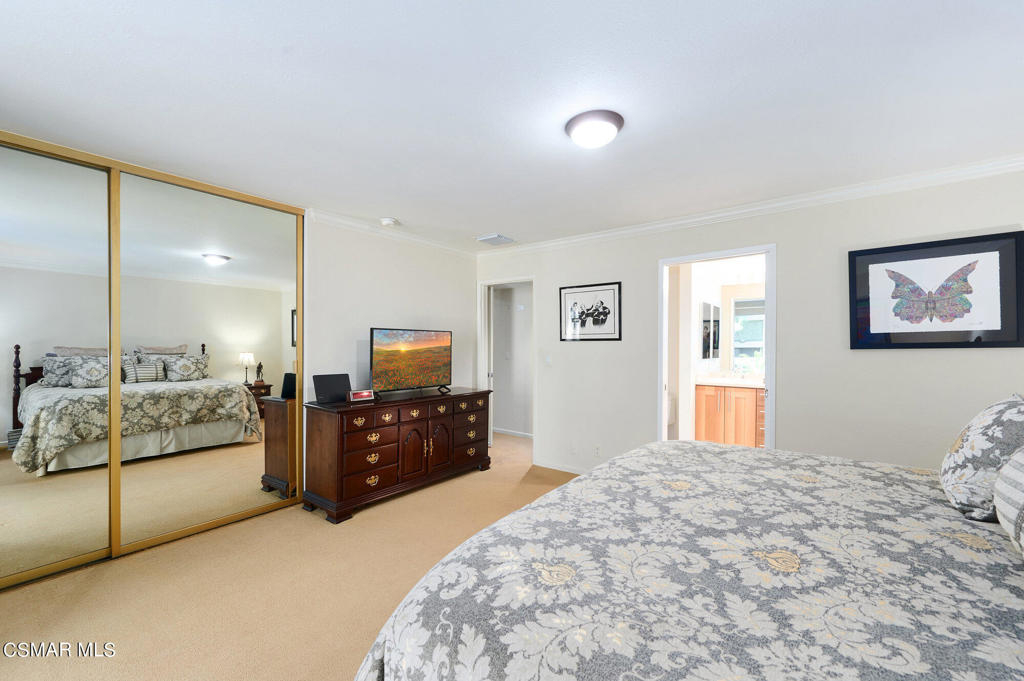 Welcome to this upgraded meticulously maintained very spacious single story 2 bed and 2 bath home with a rare to the complex oversized (approx. 300 sq ft) balcony which is perfect for relaxing or entertaining. Enter this home that leads to large living area with charming fireplace, wet bar, crown molding, recessed lighting, and a large slider that leads to the balcony. This distinctive home offers an open floor plan where the kitchen opens to a large dining area and the living area. The gourmet kitchen was remodeled with beautiful custom cabinetry, granite countertops, a center island with seating and storage, stainless steel appliances and sink and tile flooring. The primary bedroom offers lovely Bay French Doors that lead to the balcony as well. The bathroom was remodeled with custom marble countertop vanity, dual sinks, and a linen closet. The Hall bathroom was also remodeled with stall shower and custom marble top vanity. Second bedroom offers a nice sized walk-in closet. The laundry area and unit are in the home and it has ample storage too! The HVAC system was replaced in 2018 another great update this home offers. The location and position of this unit allows for cooler summers with potentially lower utility bills. l The Regent Court community offers newer custom security doors, underground parking, and has a nice pool and spa. It is conveniently located in a desirable area of Tarzana offering serenity at home, and is also close to restaurants, Ventura Blvd. shopping, and state of the art medical facilities. Take advantage of this opportunity to move right in and enjoy!