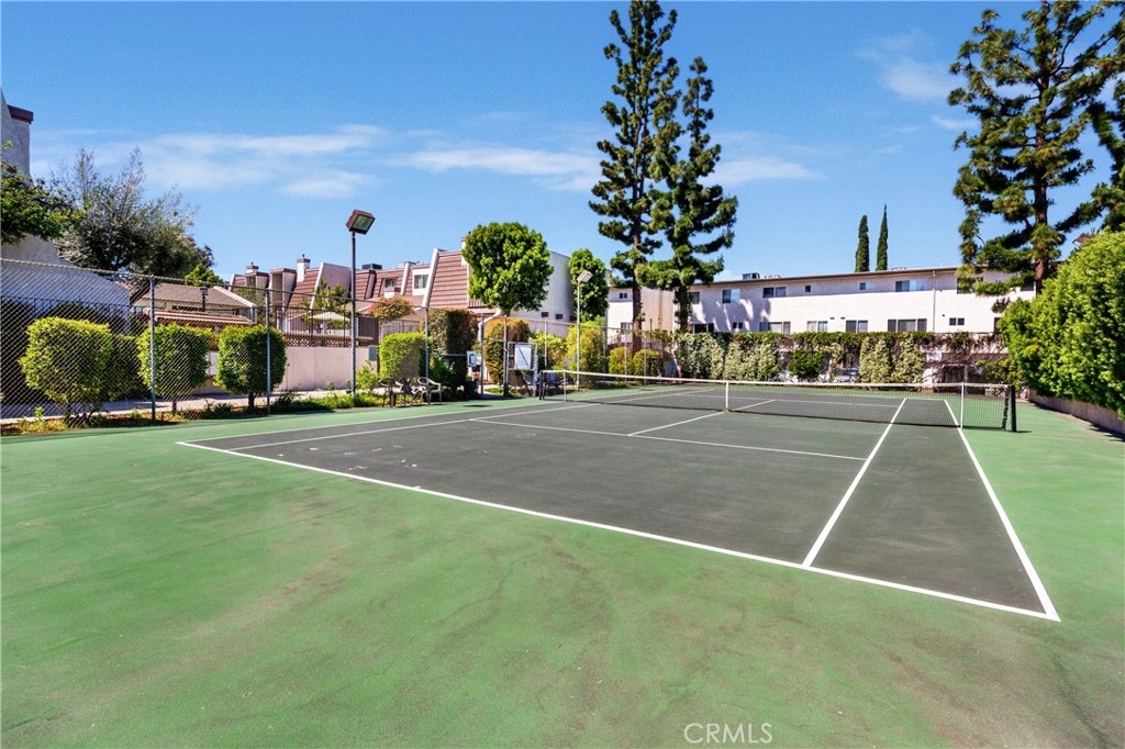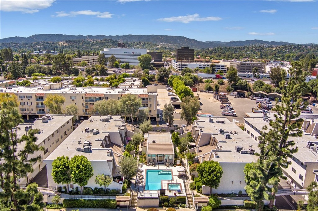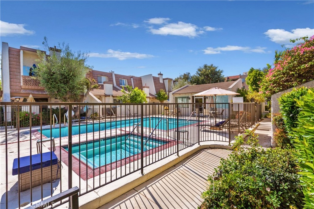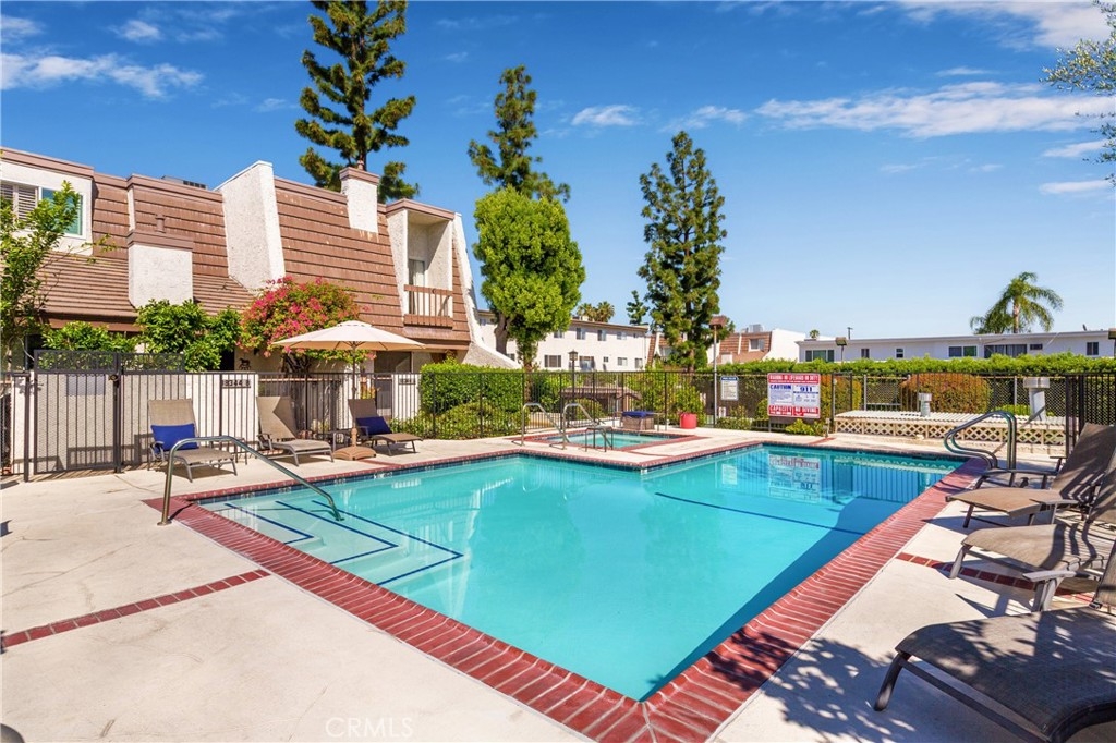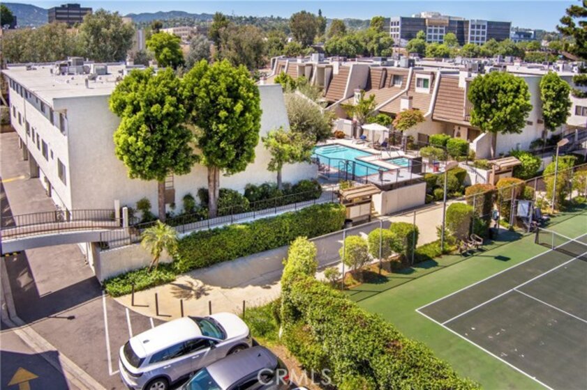 Welcome to Tarzana Villa South a gated community. Amazing opportunity to purchase this upgraded corner unit, 2-bedroom, 2.5 bath Townhouse! Spacious living room with fireplace and sliding glass door with window shutters to the front porch patio that is just steps from the pool area, mailboxes, tennis court and guest parking. Up the stairs to the dining area with wood like paneled floors and breakfast bar. The kitchen is light and bright with upgraded stone counter tops, backsplash, recessed light, stainless steel appliances, microwave, gas range with oven, dishwasher, lots of countertop space, and natural light, the windows have woven blinds that are sun resistant. Laundry room and powder room. The top level has both bedrooms including the west primary bedroom with a primary 3/4 bathroom which has double sink, vanity area, and a walk-in closet. The east bedroom includes a high ceiling, walk-in closet, and an east facing balcony overlooking the pool area. There is also a full bathroom in the hallway. There is additional cabinet space in the upstairs hallway. Central air & heat, dual pane windows. The very bottom level is an attached 2 car garage with direct access to the unit. The gated community has guest parking, a tennis court, gated pool area with pool and spa and a recreation room that has a large gathering area, kitchen, two separate bathrooms with showers, and two separate saunas. This is a fantastic location in the gated community being a corner unit and, in the neighborhood, close to Ventura Blvd, easy freeway access, Orange line busway, and Providence Cedars-Sinai Tarzana Medical Center.