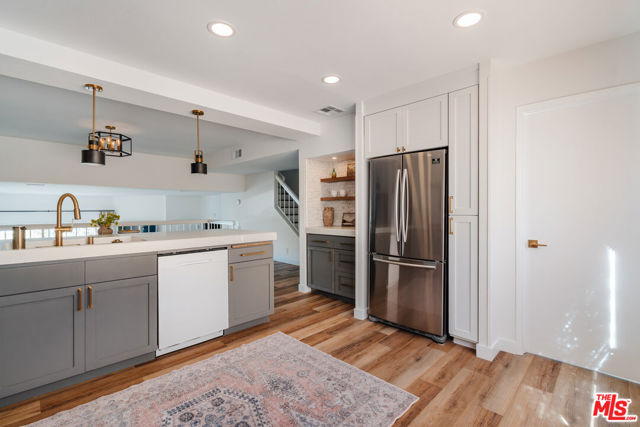 A reimagined 2 bed, 2.5 bath townhome in the gated Tarzana Villas blending scale, style, and ease. Elevated from the street for a sense of privacy, the living room rises with vaulted ceilings, a fireplace, and sliding glass doors opening to a walled, private patio for effortless indoor/outdoor flow. A large private direct-access 2-car garage with laundry and storage provides a blend of practicality and comfort. The open layout kitchen has been reimagined with design-forward finishes and is generous in scale featuring a breakfast bar, walk-in pantry, wine fridge, newer appliances, and conveniently opens to the dining space. A powder bath with Portola Paint lime wash walls adds a refined, design-forward touch. Upstairs, the oversized primary suite offers a double vanity, a dedicated makeup station, and walk-in closet. A spacious guest bedroom with 10' ceilings features a balcony and walk-in closet and sits next to a beautifully redesigned full bath. Additional highlights include luxury waterproof SPC flooring throughout, remodeled bathrooms with Portola Paint lime wash walls, a Nest thermostat, SimpliSafe security & camera, and smart leak detection.Community amenities include a heated pool + spa, tennis court, clubhouse, and sauna. Minutes to the best shops & dining on Ventura Blvd as well as the Tarzana Village Walk with a new Trader Joe's, Sephora, Nordstrom Rack, and LA Fitness. Close to beautiful hiking trails, 35 minutes to Malibu or take a scenic drive up to Ojai or Santa Barbara for a quick weekend getaway. Conveniently close to the 101 and 405 making a commute a breeze. HOA covers earthquake insurance, water, sewer, and trash.