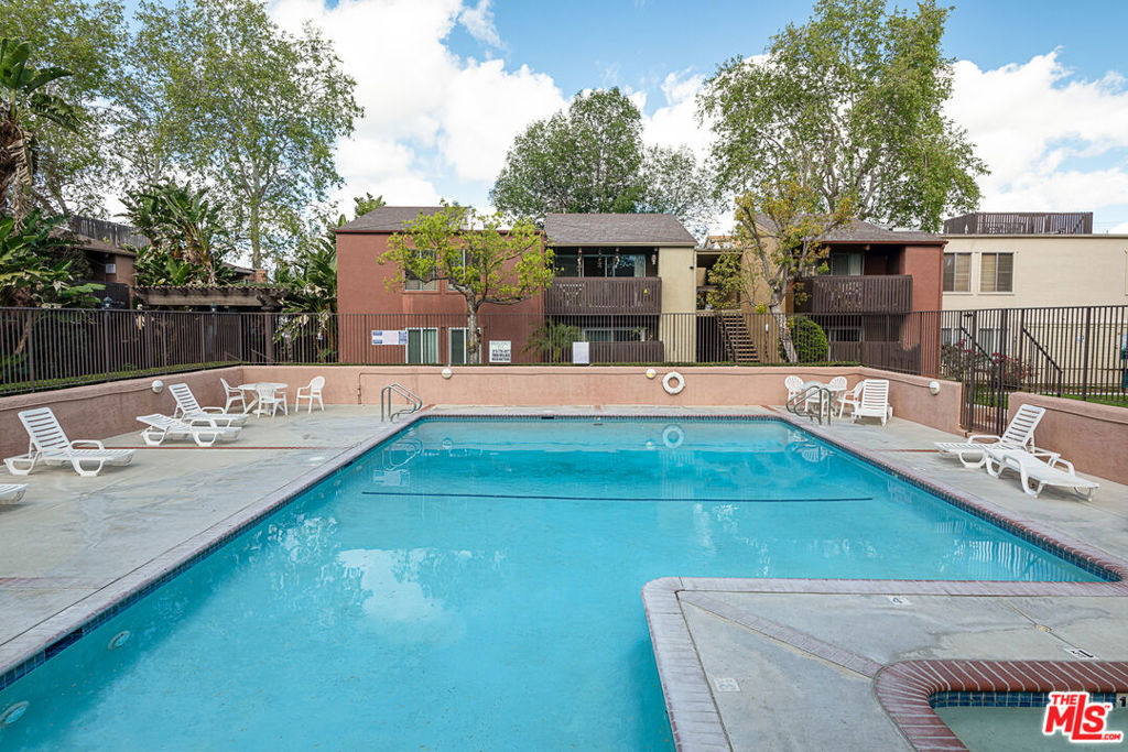 Presenting this gorgeous, light and bright 2 bedroom and 1 bathroom condo. Located in the heart of Tarzana in the quiet, gated community of Tara Village, this condo has it all! The living and dining area boast high vaulted white wood-beam ceilings with direct access to a covered porch, perfect for relaxing and dining al-fresco. The kitchen comes fully equipped with stainless steel appliances. Off of the living area are the two bedrooms and bathroom. The master bedroom is spacious and has two large closets. This gated park-like community is very quiet and friendly. The grounds are complete with a playground, pool, fitness center, and recreational room. The HOA covers water, trash, gas and sewer. This home is close to the Tarzana Square with a variety of medical facilities, shopping and delicious restaurants nearby!
