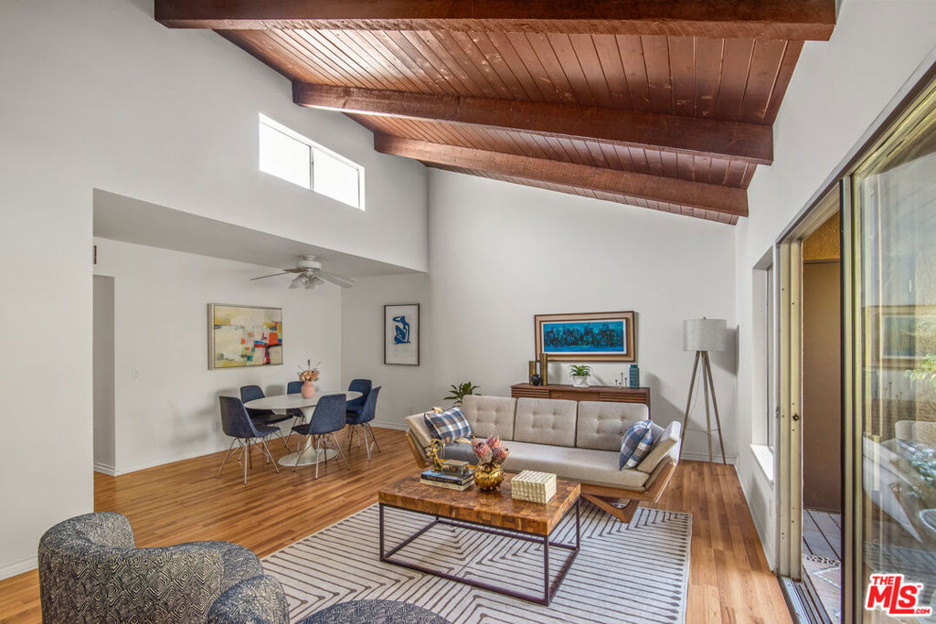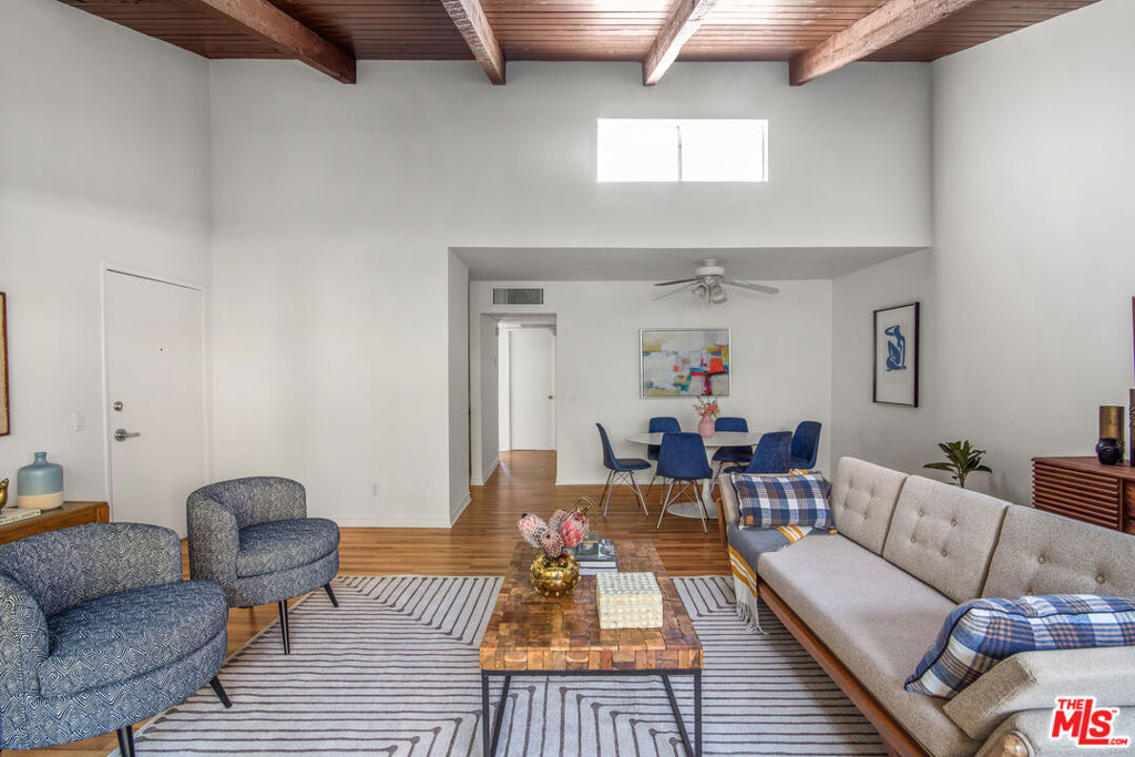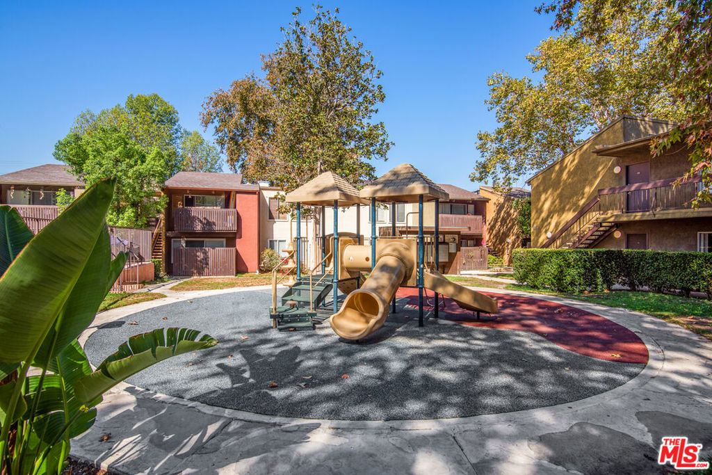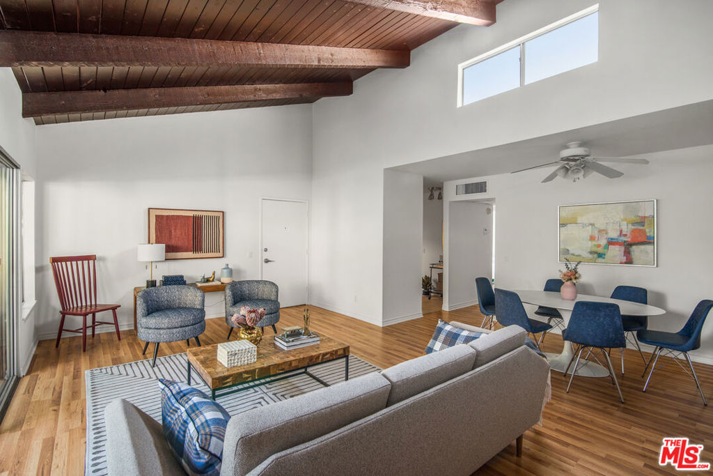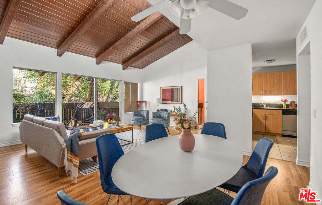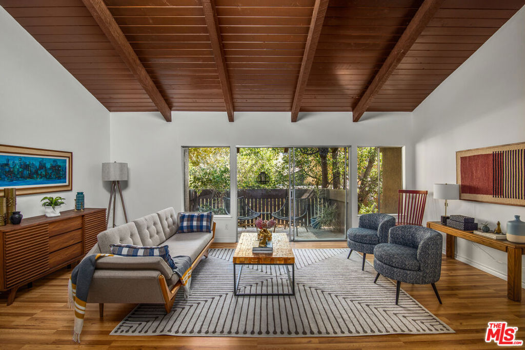 Located in the heart of Tarzana, close to Ventura Blvd & its eclectic offering of shops & restaurants, sits this beautiful condo in a gated complex. A vine covered trellis & towering California sycamores lead to the second-floor unit. Once inside, open beam ceilings, glass slider & clerestory window allow light to pour in from every angle. Hardwood floors dance across a blended dining & living room, opening to a balcony overlooking a symphony of verdant beauty. Just beyond, a remodeled kitchen comes replete w/modern cabinetry, stone counters & stainless-steel appliances. Two bedrooms + 2 updated baths, includes a light-filled ensuite w/mirrored closet sliders & walk-in shower, whilst inside laundry adds convenience. Amenities include gated access, heated pool + spa, BBQ area & meandering paths under canopies of trees. Central HVAC & 2 parking spaces complete this immaculate offering.