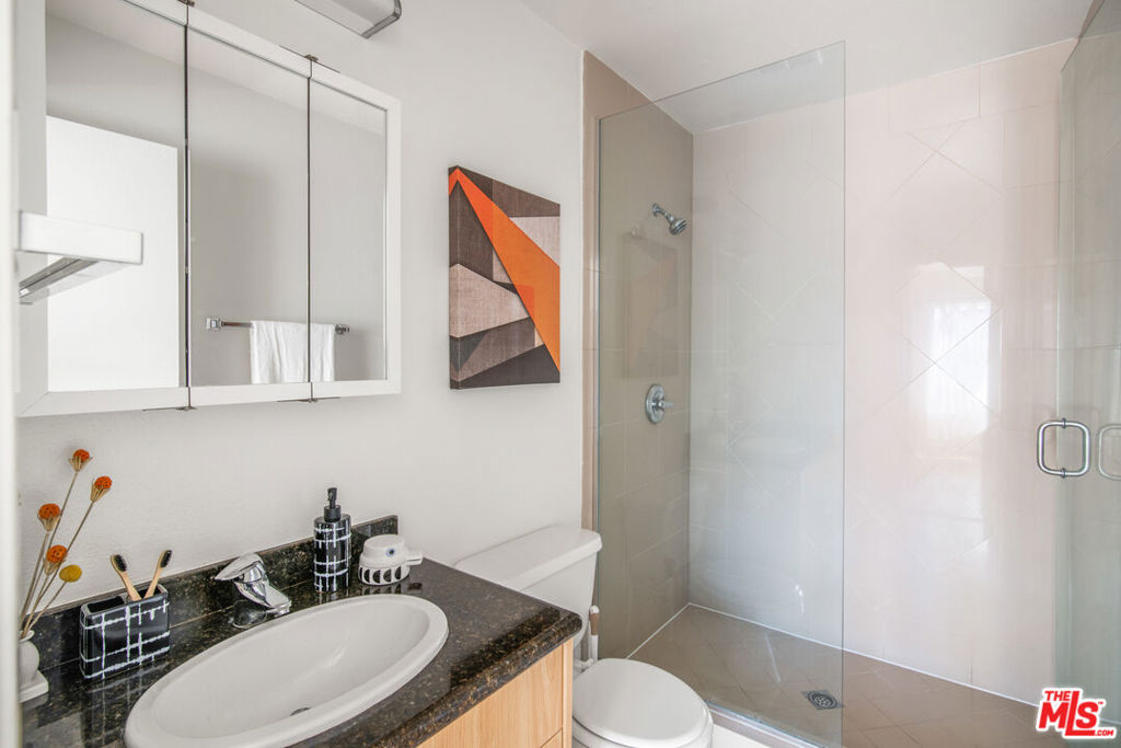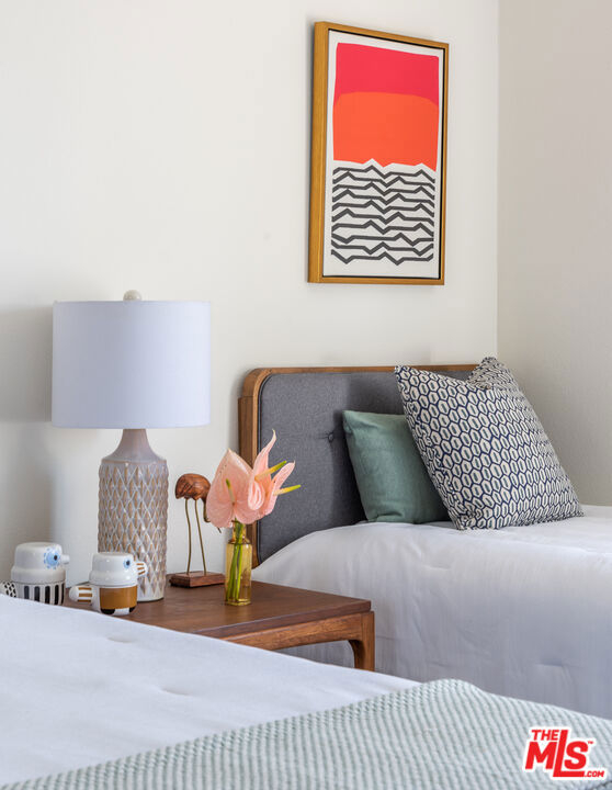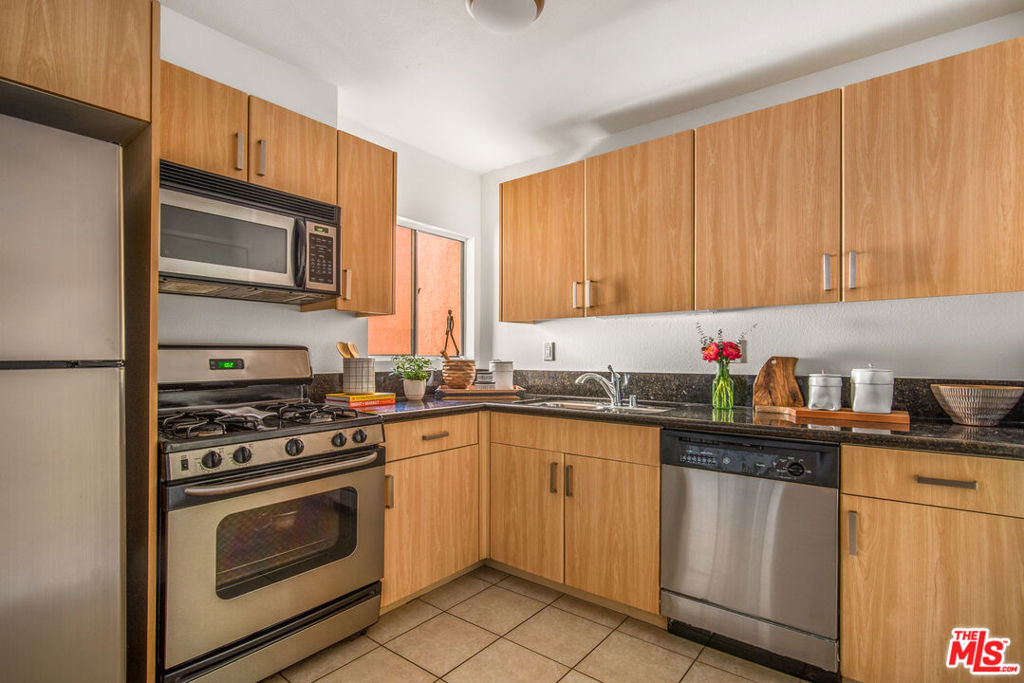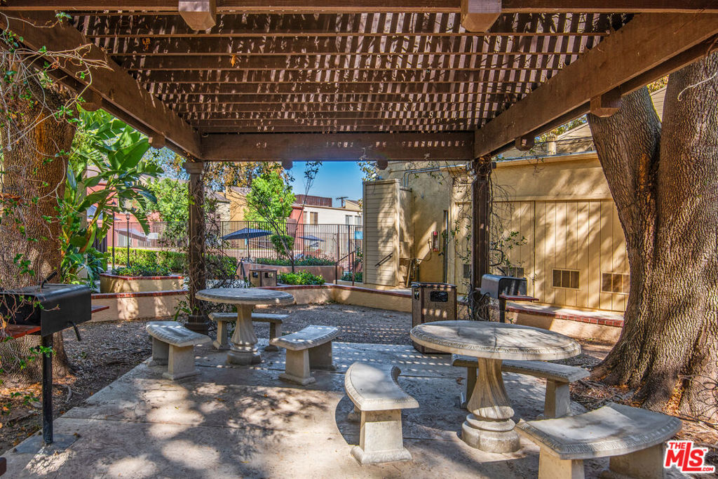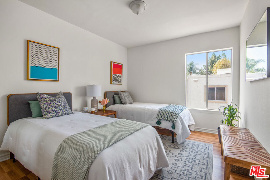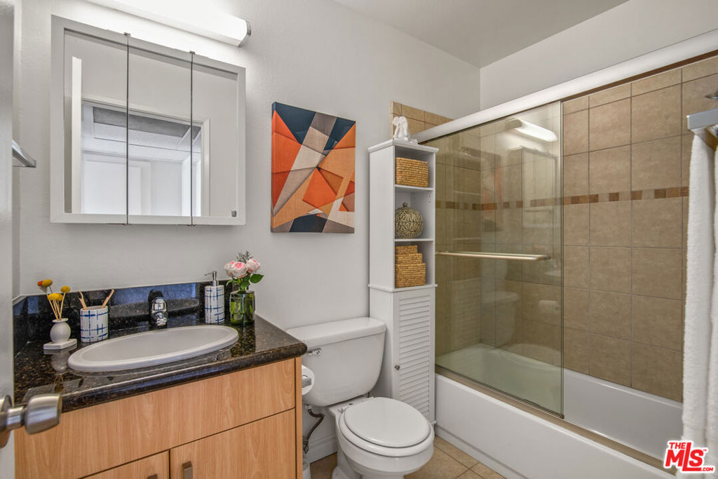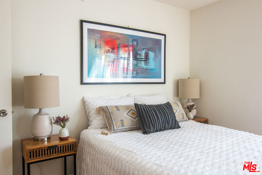 Located in the heart of Tarzana, close to Ventura Blvd & its eclectic offering of shops & restaurants, sits this beautiful condo in a gated complex. A vine covered trellis & towering California sycamores lead to the second-floor unit. Once inside, open beam ceilings, glass slider & clerestory window allow light to pour in from every angle. Hardwood floors dance across a blended dining & living room, opening to a balcony overlooking a symphony of verdant beauty. Just beyond, a remodeled kitchen comes replete w/modern cabinetry, stone counters & stainless-steel appliances. Two bedrooms + 2 updated baths, includes a light-filled ensuite w/mirrored closet sliders & walk-in shower, whilst inside laundry adds convenience. Amenities include gated access, heated pool + spa, BBQ area & meandering paths under canopies of trees. Central HVAC & 2 parking spaces complete this immaculate offering.