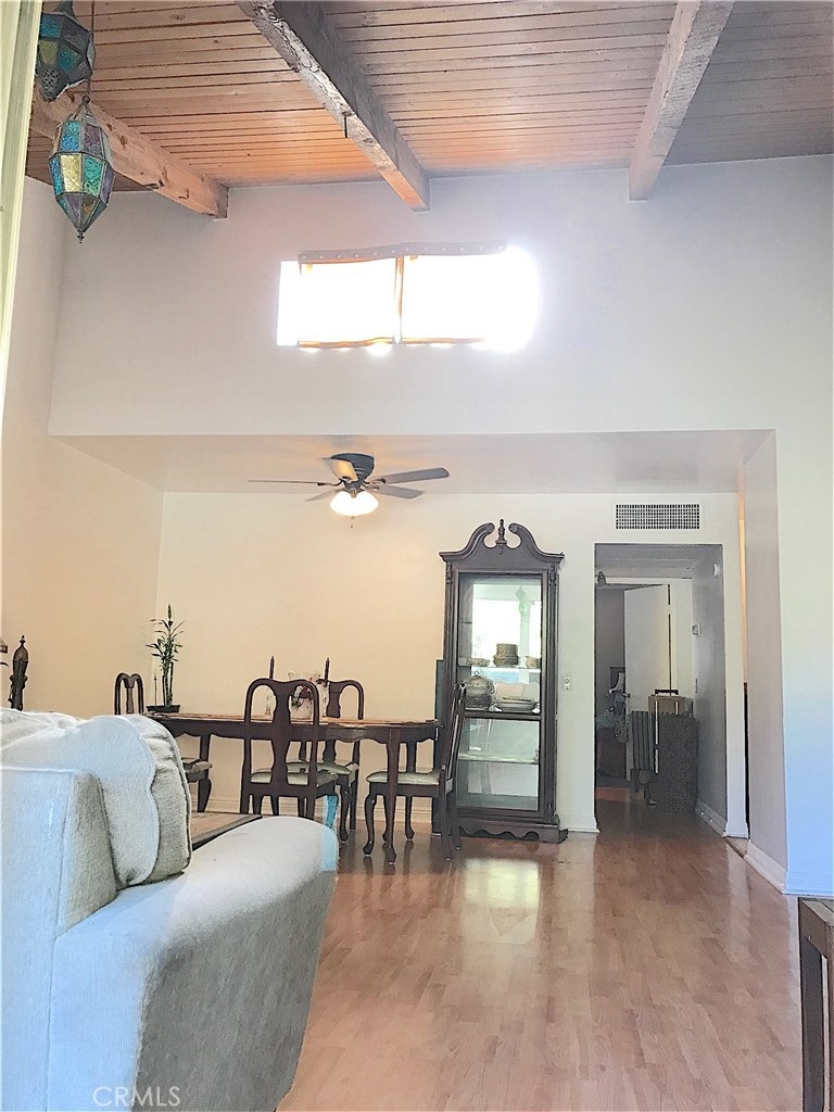 A spacious 2 bedroom 2 full bathroom condo awaits you with high ceilings and a large balcony overlooking the greenery. This Tara Village condo is placed in one of the best locations within the lush garden community. This private and quiet upper unit has a foyer entry, big living room with vaulted ceiling and wide sliding doors lead to a private balcony looking over the greenbelt and mature trees, and large space for the dinning area. Laminate flooring throughout as well as tiled flooring in baths and kitchen. The unit also has two assigned carport spaces. Association dues are include: Gas, Water, and Trash. Association amenities are: Pool, Spa, Gym/Exercise Room, Clubhouse great for entertaining, BBQs, and Playground. Close to houses of worship, as well as the bustling Ventura boulevard. This has it all, do not pass this up.