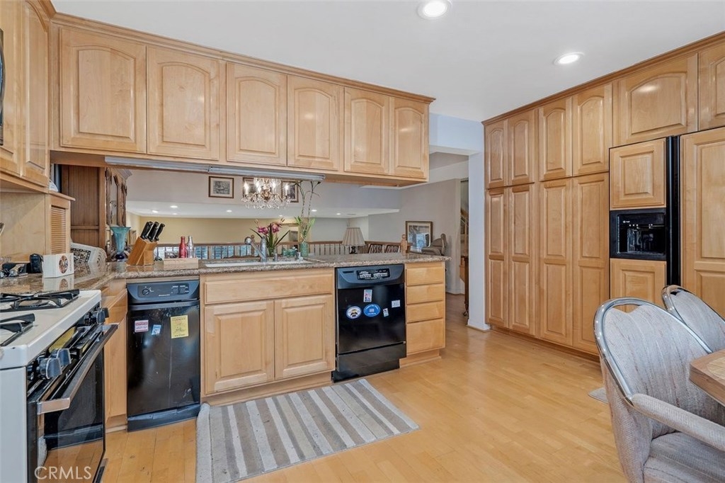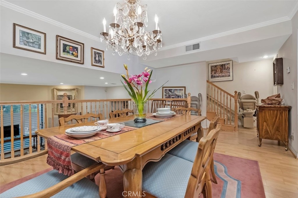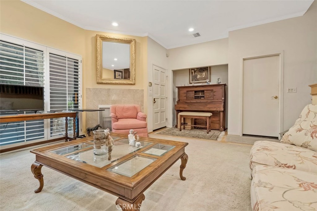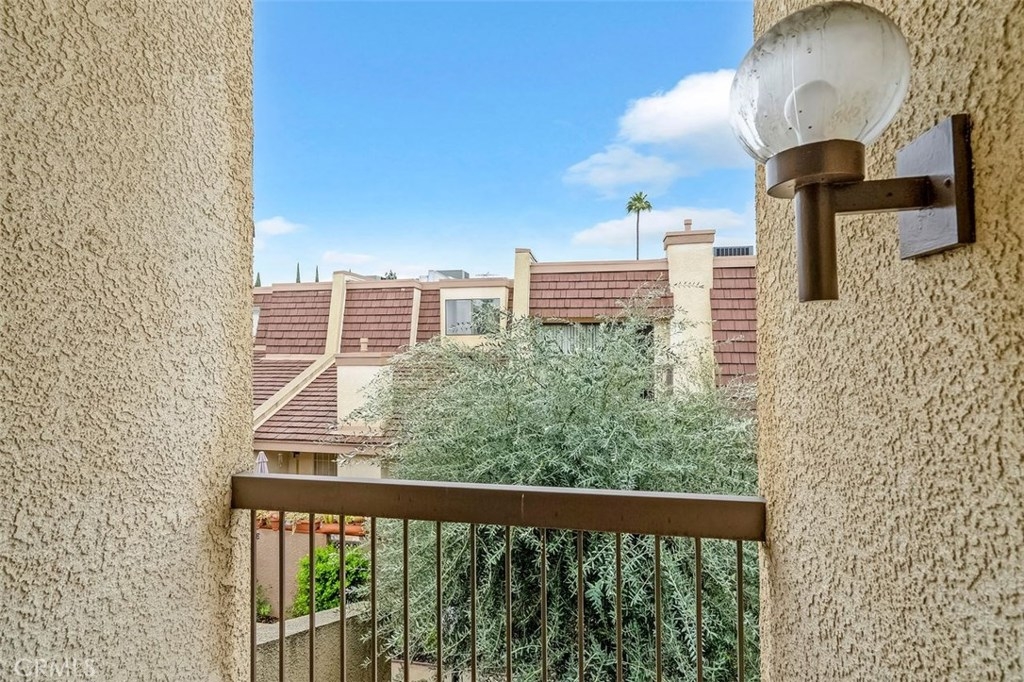 Welcome to this charming town home complex punctuated with beautiful landscaping offering roses, trees, flowers and greenery throughout. Enter the unit through the large private patio great for barbecues or to enjoy sitting outside. The living room has sliding glass doors with wood shutters opening to the patio. A gas fireplace punctuated with marble trim creates a lovely focus point.As you ascend the first level of stairs you are welcomed to the dining area with wide open views of the living room and the beautifully remodeled kitchen with manufactured wood flooring on the kitchen and dining room level.The two bedrooms up stairs each have large walk in closets and each has a private bathroom. There is a small balcony in one of the bedrooms and the other bedroom sports a Murphy bed between built in cabinets offering a desk and bookcase. a This large unit is in the middle of the complex providing a 1,657 square foot home and your own over-sized double garage that is attached and you enter your unit directly from the garage. Amenities include a recreation building with its own kitchen; sauna, jacuzzi, pool table. A large swimming pool offers fun plus added beauty to the grounds. Location is a big plus as the complex provides easy access to the 101 Fwy, the Orange Line, and shopping along Ventura Blvd. All of this for $499,000.