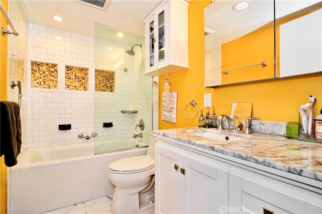 Beautifully renovated 2-story townhome with 2 Bedrooms and 2 baths located in a desirable Tarzana neighborhood! Ground level private own access to the unit, spacious patio, and direct access to private 2-car attached garage with side by side washer and dryer (included in sale). Formal entrance feels secluded and leads you into a light and bright setting throughout. Kitchen features stainless steel appliances, designer cabinets, granite counters, tile backsplash, imported marble flooring and breakfast nook. Conveniently placed full bath downstairs offers custom shower with imported tiles and pedestal sink. Upstairs full bath offers custom cabinets with marble countertops and imported marble flooring. Large Master bedroom boasts large walk-in closet and balcony. Additional features include, hardwood flooring in living room and bedrooms, recessed lighting, large hallway linen closet upstairs, exquisite touches and much more. Community features include pool, spa, bbq area, sports court, fitness room, multi-purpose rec room and secured gated entrance. Easy access to 101 freeway, walking distance to restaurants, shopping and supermarkets!