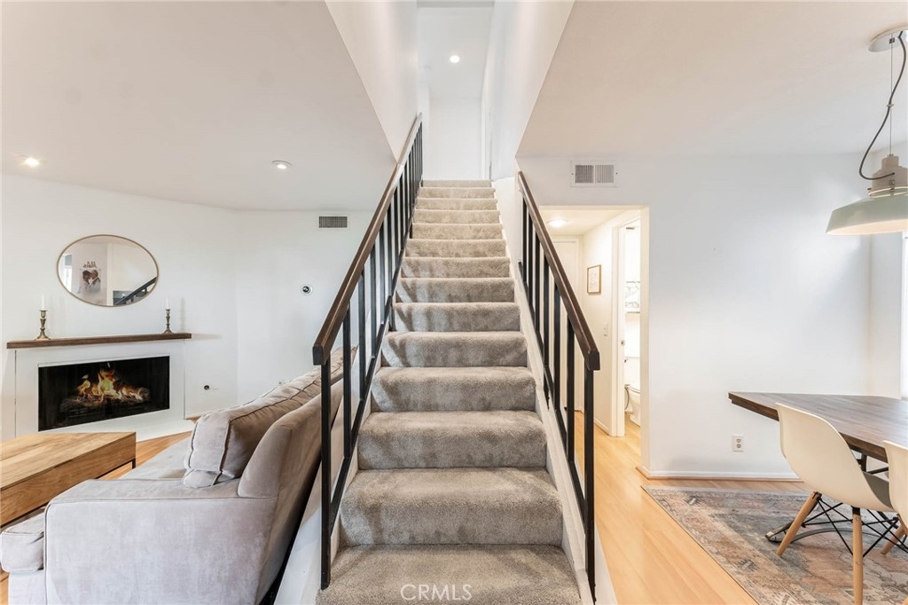Welcome to this stunning and upgraded 2 bedroom 2.5 bathroom townhouse, offering an ideal blend of modern comfort and resort-style amenities. Upon entering, you'll be immediately captivated by the inviting living room adorned with laminate flooring. The centerpiece of the room is a cozy fireplace, perfect for gathering around on chilly evenings. The well-appointed kitchen and adjacent dining area provide ample space for culinary endeavors and dining with friends and family. Newer carpeting graces the second floor and stairs, creating a plush and comfortable environment. The primary suite offers a tranquil retreat, featuring a walk-in closet and an en-suite bathroom for ultimate convenience and privacy. The remodeled bathrooms showcase elegant fixtures and modern design. Secondary bedroom is spacious with a walk-in closet. Practicality and convenience are seamlessly integrated with in-unit laundry and a direct access garage, making daily tasks a breeze and providing excellent storage solutions. Residents of this townhouse will enjoy access to a variety of exceptional amenities - pool and spa for relaxation, workout gym, sauna, half-court basketball court, and a club house for social gatherings. Don't miss the opportunity to own a home that combines contemporary design with an array of desirable amenities. This townhome is just minutes away from the area's top restaurants, shops, entertainment options, and major freeways. Come see this gem as this home is Priced to Sell! The Key to Your New Home is waiting for YOU!
