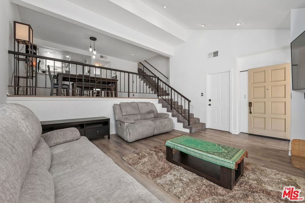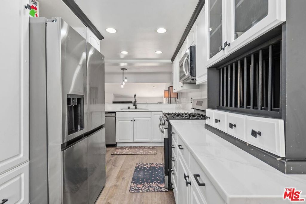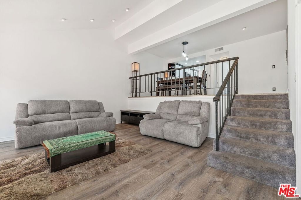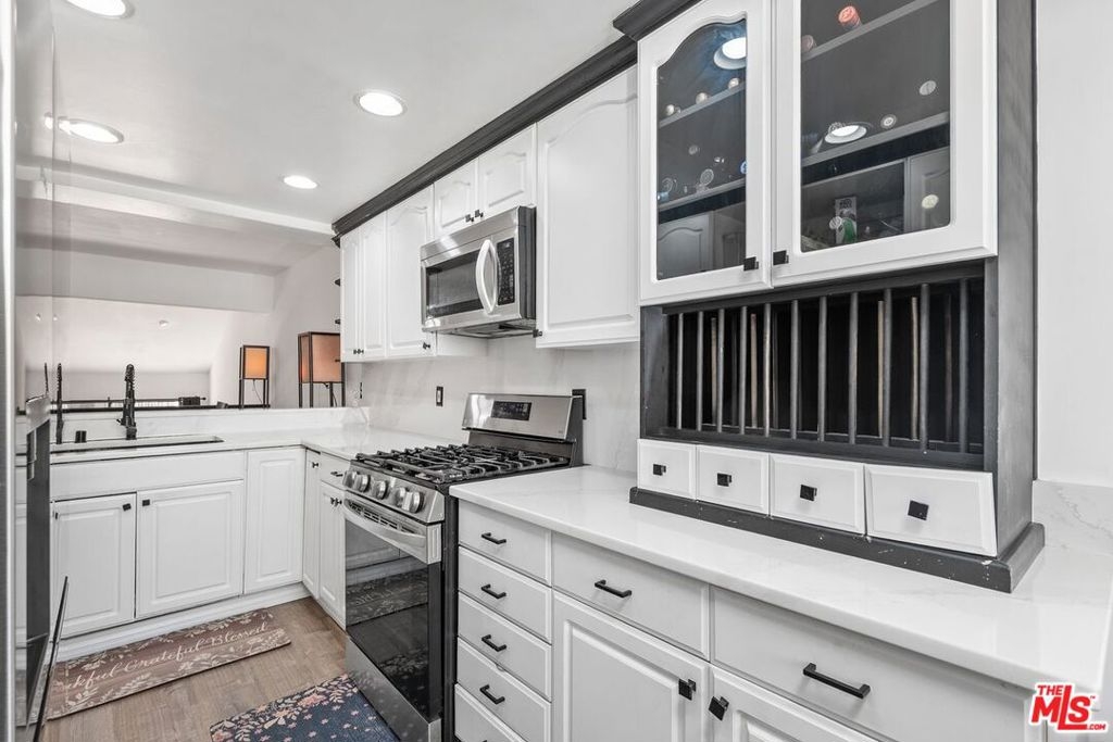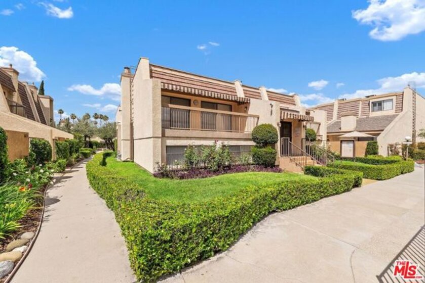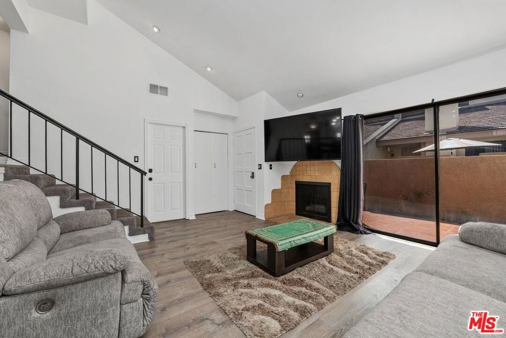 Welcome to this move-in-ready multi-level townhome in Tarzana Villa North. Located toward the rear of the community, it offers added privacy and low HOA dues. Natural light fills the open, recently updated interior featuring recessed lighting, new carpet, fresh paint, plank flooring, ceiling fans, and modern fixtures. The upgraded kitchen includes quartz countertops and backsplash, an LG stainless steel dishwasher, a built-in microwave, an LG ThinQ gas range, an oversized sink, updated fixtures, freshly painted cabinets with new hardware, and an eat-in area. The living room offers high ceilings, a gas fireplace, and sliding doors leading to a spacious enclosed front patio. Enjoy a large dining area and flexible family room or office. Both bedrooms feature en-suite bathrooms and ceiling fans, with one offering a walk-in closet. Additional highlights include an attached two-car garage, washer/dryer hookups, central A/C, and a newer water heater. The gated community features a pool, spa, clubhouse, saunas, showers, billiards room, and entertainment space with a kitchen. A must-see!