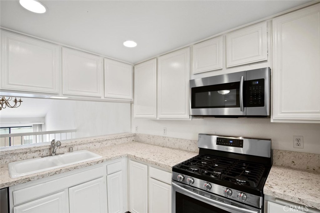 Fabulous inside unit in the impeccably maintained Tarzana Villas North. Spacious two-bedroom, two-and-a-half-bathroom home with formal dining room, family room, and living room with fireplace, recessed lighting, tile and carpet flooring, plantation shutters and wood blinds; newer A/C. The kitchen has new stainless-steel appliances with five-burner range, quartz counters, pantry, and eat-in dining area. All bathrooms have new sinks and vanities. Master en-suite has walk-in closet. Tiled patio and direct-access two-car garage with mail slot in door. Private trash pickup weekly, outside your garage door... no bins! Two-story rec room with spa, saunas, and game room, plus upstairs event room with kitchen. Beautiful resort-like pool area and lush foliage complete the tranquil setting. Security cameras throughout gated complex. HOA includes earthquake insurance. One pet, 25 lbs. or less.