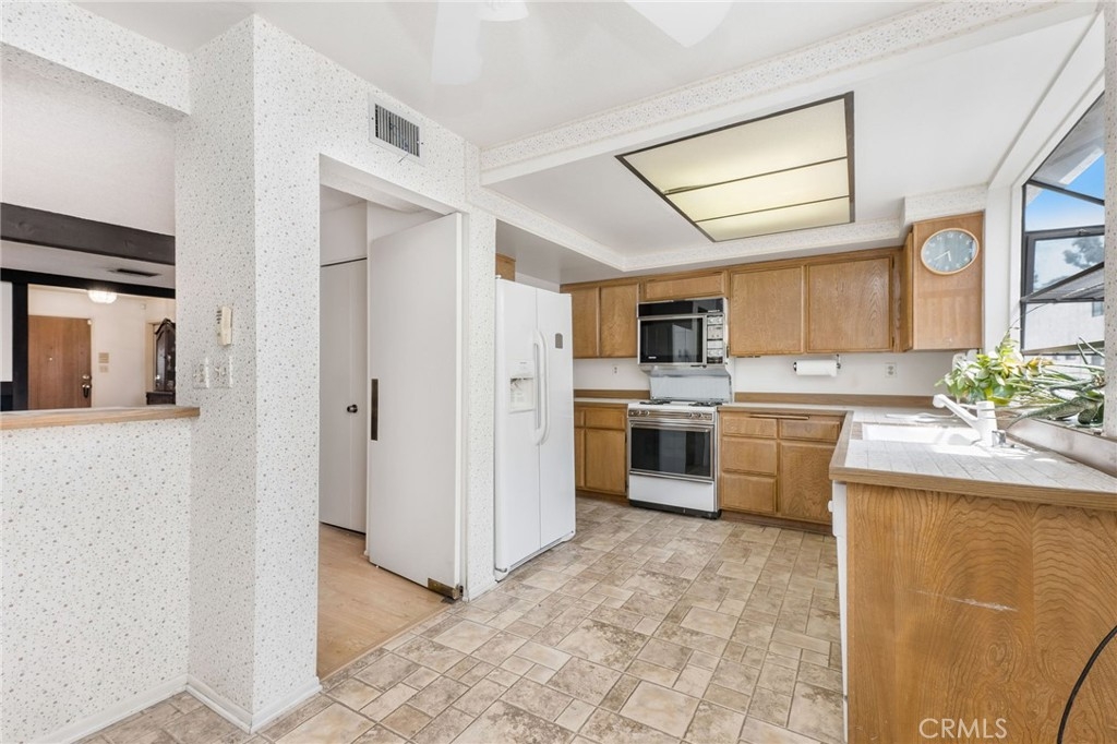 A great fixer townhouse to customize! Walk through the front door and see the retro style open floor plan with a reading nook with high ceilings by the fireplace and outdoor patio. On the same level is the half bath for guests and the sun drenched kitchen with a pantry and in unit laundry. Heading upstairs to the two bedrooms and bathrooms, the primary suite comes with a dual side walk in closet. From the bottom floor there is 3 assigned parking spots and direct access into the unit with an entire level for storage. This unit is located in a great part of Tarzana, walking distance to Ventura Blvd with shops, restaurants, and more. Around the corner is a Metro Link station, a bio tech firm coming in, and more. This is a great opportunity to make this townhouse a home with your own personal touches. Union Bank is offering a $9,000 grant for first time home buyers for this specific unit!
