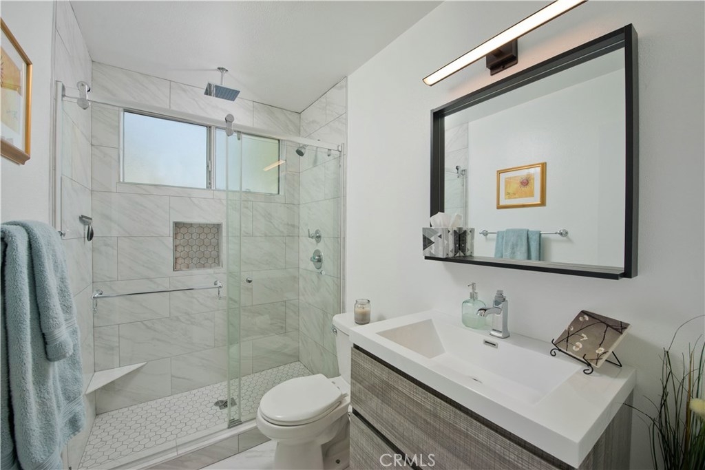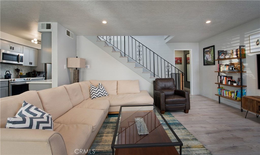 Beautifully Remodeled Turnkey 4 bedroom, 3 bathroom two story condo in Tarzana! Enter into the great room on the first floor offering a spacious living room, dining area with newly remodeled fireplace and accent wall, open kitchen with grey cabinets and quartz counter tops. First floor bedroom perfect for a home office or guest room complete with a walk in closet, bathroom across the hall and slider to back patio. Upstairs offers a master suite, 2 additional spacious bedrooms, a full bathroom, and a walk in storage closet. One second level bedroom boasts a large patio overlooking the lush landscaping this wonderful community offers. Master suite with wall to wall closet space and a newly remodeled master bathroom. Laminate flooring throughout, upgraded light fixtures, plantation shutters and roman shades, newer electrical panel, recessed lighting, remodeled master shower, 4 parking spaces, 24 hour security, pool, playground, basketball court, laundry hook ups offer the potential for in unit laundry and much more! HOA is VA approved and covers earthquake and fire insurance.