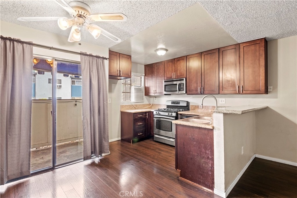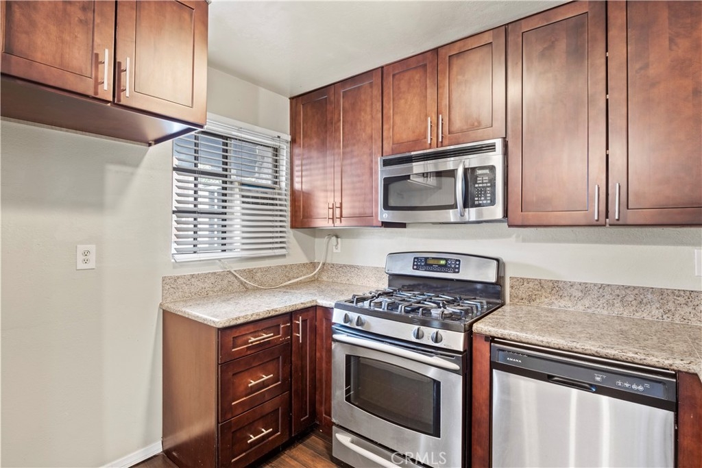 Fully renovated throughout 1 bedroom, 1 full bathroom, over 600 sqft Tarzana condo. Prime location that is walking distance to Ventura Blvd, shops, restaurants and minutes from the 101 freeway. Hardwood floors, newer kitchen with granite countertops and cabinets as well as in the bathroom. Newer stainless steel appliances (microwave, dishwasher, gas stove). Plenty of closet space for storage. Enjoy the private patio. Unit has 2 assigned parking (tandem). Complex offers a swimming pool, jacuzzi, BBQ area and multiple laundry rooms. HOA dues include water and trash.