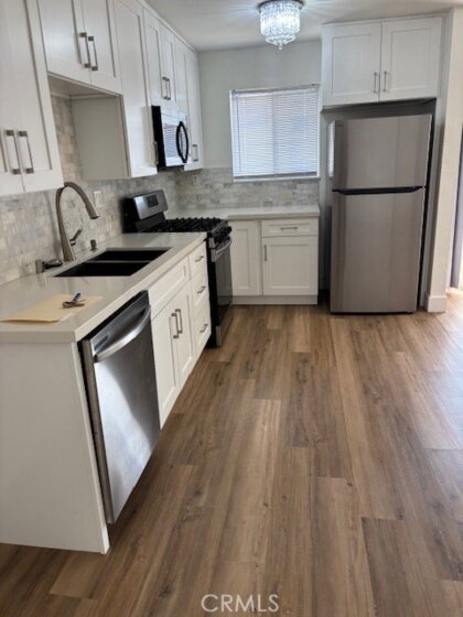 Welcome to this gorgeous remodeled top floor Penthouse level condominium home in the heart of Tarzana. Upgraded throughout with the finest detailing makes this one so special in an incredible location. The open kitchen now features dual stainless steel sinks, Samsung stainless appliances including gas four burner range/oven, microwave, dishwasher, and a brand new LG stainless refrigerator/freezer. Wait until you see the impeccable quartz counters with designer tile splash back and designer cabinetry. There are brand new wide plank laminate flooring throughout this spacious unit. The dining area has a ceiling fan lighting which looks out to the spacious balcony that overlooks the openness of quiet space with partial views out to hills. This one is extremely light and bright with the southwest views. Location is in the rear of the building for added quietness. The unit has just been painted. Both of the bedrooms now feature recessed lighting. Each bedroom is nicely sized with excellent closet space and full baths with designer shower fixtures. The one bedroom also features a vanity area. This home feels so much larger than the actual square footage. The HOA is only $400/month and includes water, pool and spa area, community BBQs, community laundry on each level (only steps away from the unit on the top level), recreation room, trash, sewer, and pets are allowed. Gated community for added security. Check the comps and other units for sale in this complex and this remodeled top floor two bedroom unit is a great value. Vacant and ready to go!