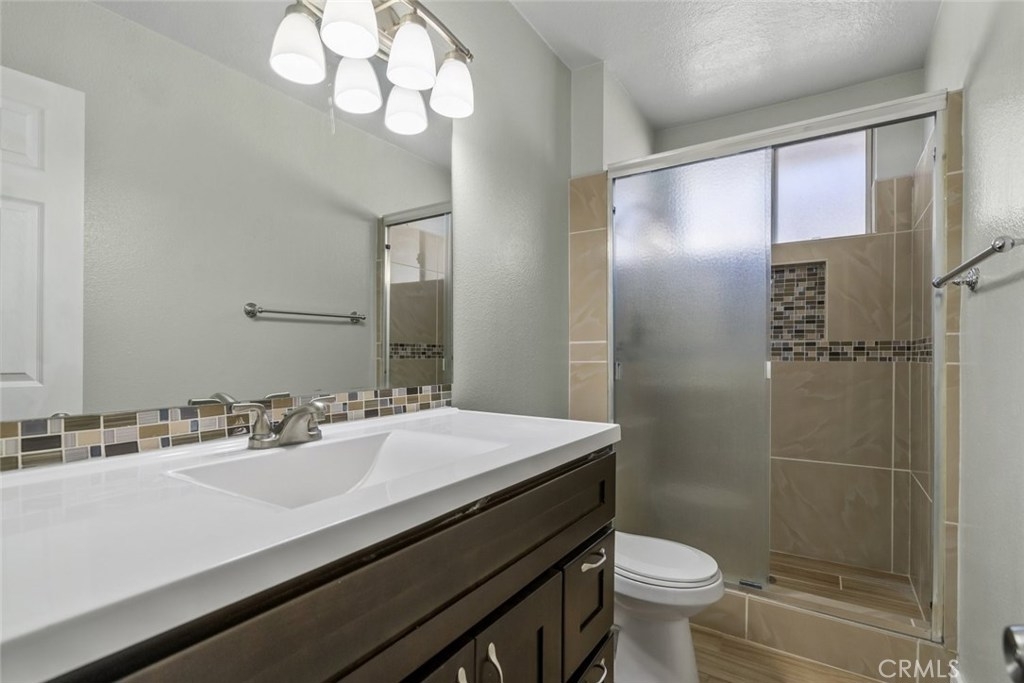 A spacious and airy 3-bedroom, 2-bathrom, condo in Tarzana is a lovely home just waiting to become yours! Set at towards the back of this gated complex is unit B27 that boasts beautiful laminate floors and elegant accent and crown moldings highlighted by the all-around recessed lights. The bright living room with adjoining dining room leads into the open kitchen complete with all brand-new stainless-steel appliances, stone counters with a complimenting tile backsplash, and a pantry nook. All bedrooms have built closet storage featuring mirrored sliding doors. The master bedroom incorporates two large closets and an en-suite bathroom complete with a spacious vanity top and tiled walk-in shower. Across from the main bathroom, which houses a shower/tub combination, is a large walk-in closet that’s ideal for linens, coats, extra storage, or anything else to suit your needs. Outside, the complex provides the unit with 2 parking spaces, a community laundry room, community pool, spa, rec room, and a wonderful playground plus a basketball court! HOA includes water, sewer, landscaping, common areas, earthquake insurance, and basic cable. Down the street from Tarzana Square Shopping Center, medical offices, Whole Foods, shops and dining along Ventura Blvd, easy freeway access, and more! Text Linda today!