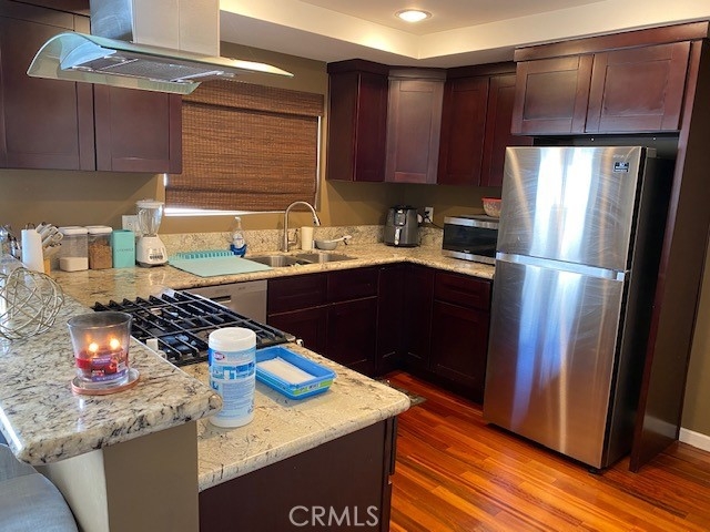Step into this Beautiful and spacious 2 bedroom, 2.5 bathrooms townhome in Tarzana. A bright open floor plan features maple finish hardwood floors and natural light. The great living room has a stack stone finished fireplace and access to great front patio. The kitchen comes with a bar, granite counters, and stainless steel appliances. Master Bedroom with en-suite bathroom. The second bedroom is a nice size. Other features are a gated complex with a pool, spa, tennis, attached two-car garage, and close to shopping and restaurants.